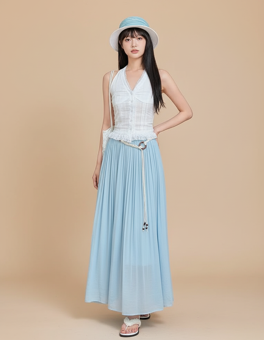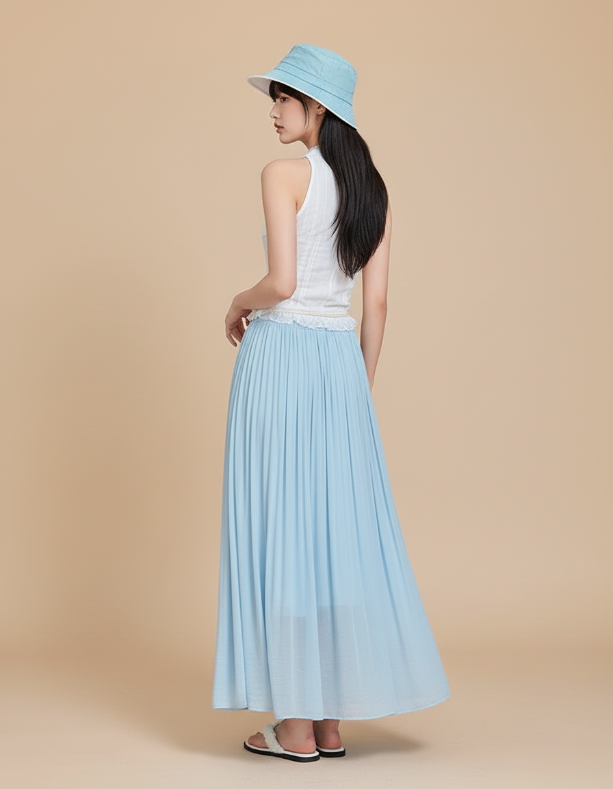 Jupe Longue Plissée Bleu Ciel : L'Expression Subtile d'une Élégance Naturelle