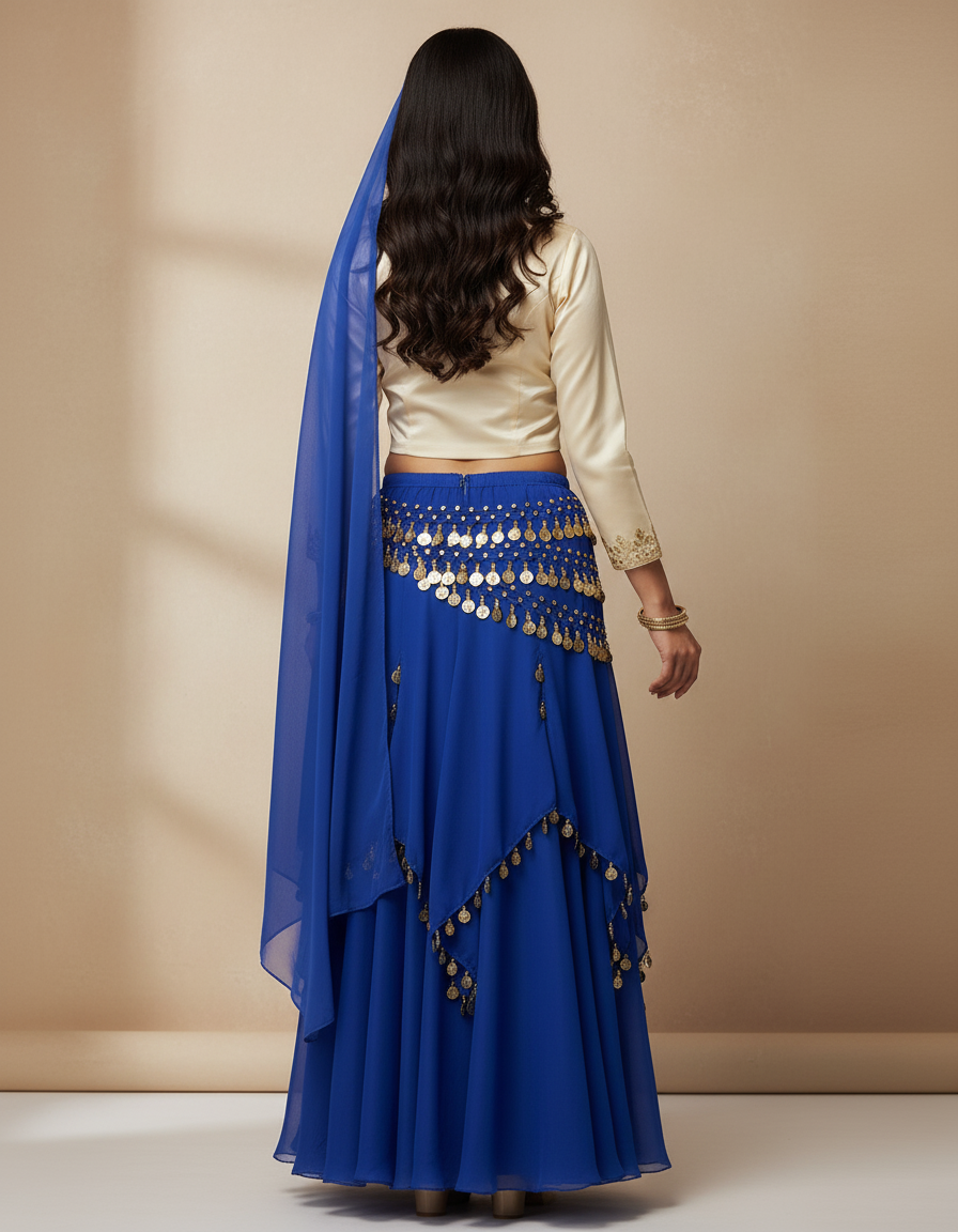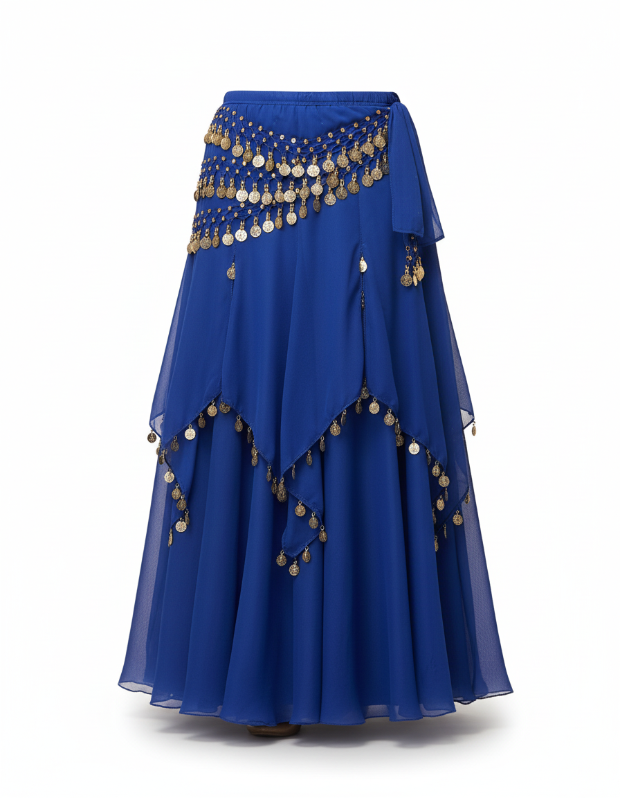 Conçue en mousseline aérienne, la Jupe Longue Bleue Fluide incarne la grâce et la légèreté. Sa coupe asymétrique et ses volants délicats, sublimés par de subtiles touches dorées, créent un mouvement hypnotisant à chaque pas. Le tissu épouse votre silhouette avec fluidité, garantissant un tombé impeccable et une liberté totale. Vous vous sentirez libre, à l'aise et résolument élégante, prête à conquérir la journée ou la soirée sans aucune contrainte.