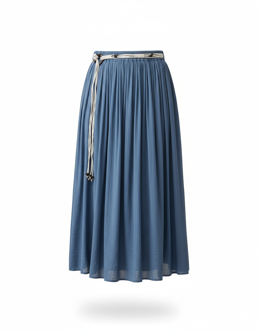 La Jupe Longue Bleue Plissée Décontractée à la taille ajustable