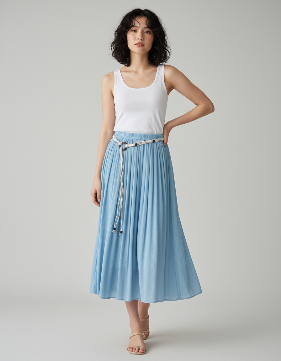 Jupe Plissée Ciel : L'Élégance Fluide de Votre Été
