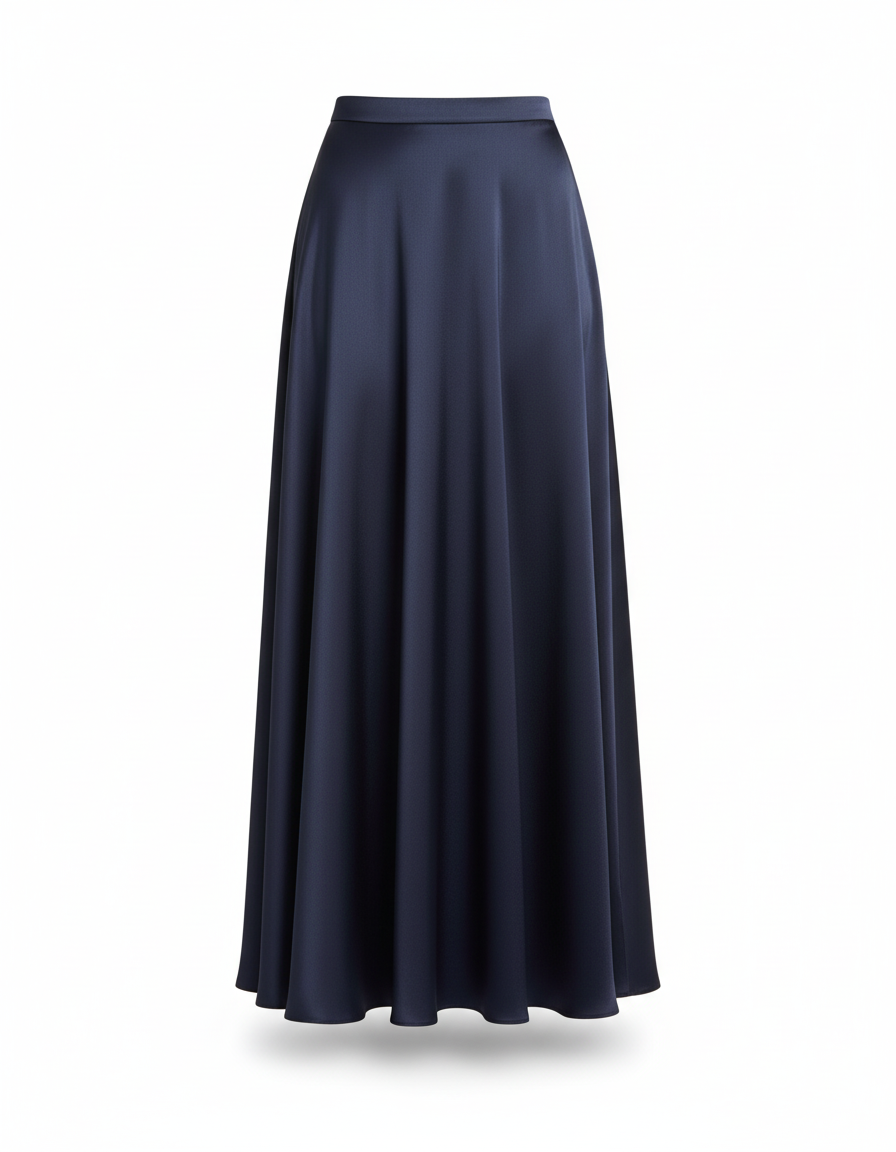 L'Élégance Fluide : Votre Jupe Longue en Satin Bleu Marine
