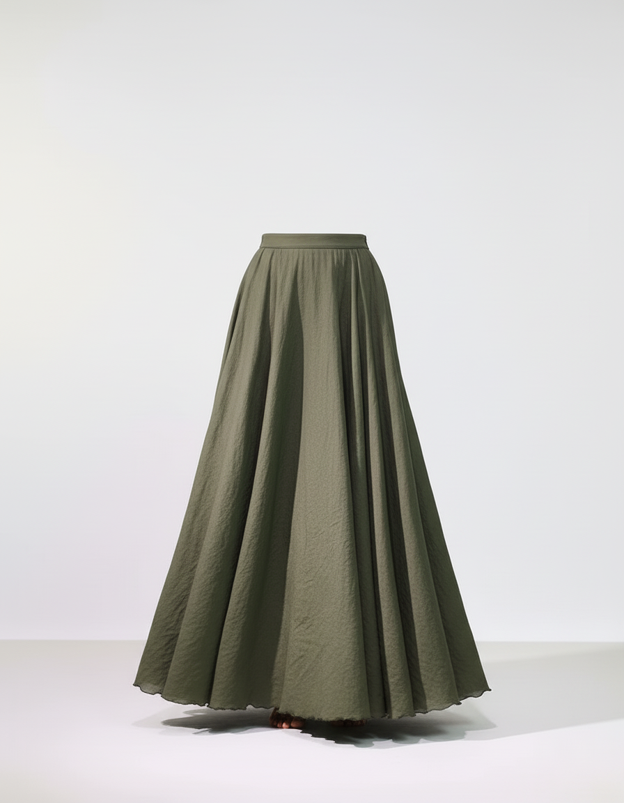 Ce qui distingue notre jupe, c'est son lin de qualité supérieure, choisi pour sa texture riche et sa capacité à créer un volume délicat sans alourdir. Loin des coupes rigides, sa conception "grande taille" n'est pas qu'une question de mensurations, mais une invitation à embrasser une mode inclusive où le luxe rime avec bien-être. Chaque pli et chaque mouvement de cette jupe verte racontent une histoire de sophistication discrète et de durabilité. Adoptez cette pièce unique pour infuser votre garde-robe d'une touche bohème raffinée et d'un confort que vous ne voudrez plus quitter.