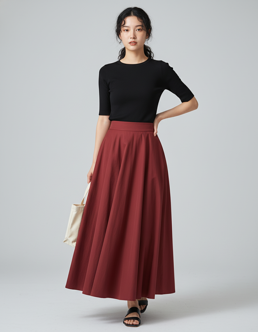 L'Élégance Fluide : Votre Nouvelle Jupe Longue Bordeaux Évasée