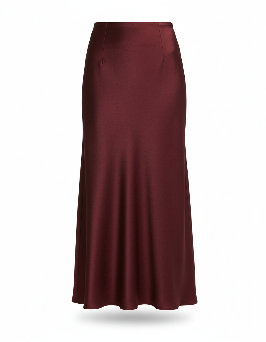 L'Élégance Redéfinie : La Jupe Longue Bordeaux en Satin