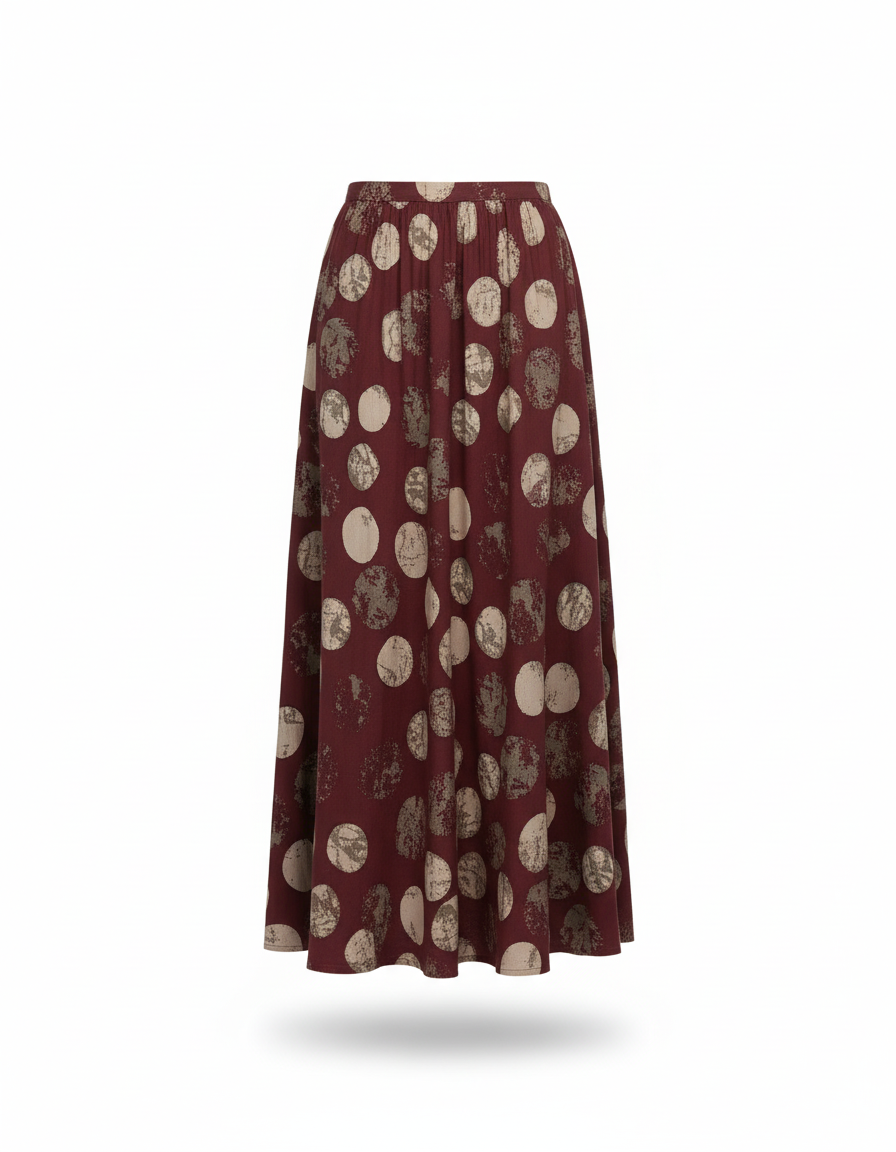 Pourquoi choisir la Jupe Longue Bordeaux Imprimée Cercles Fluide