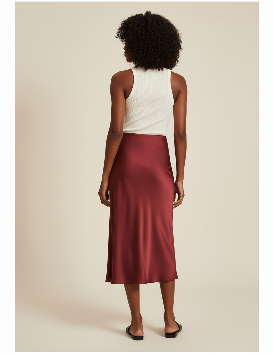 La Jupe Longue Bordeaux Satinée Élégante : Une Allure Sophistiquée Sans Effort