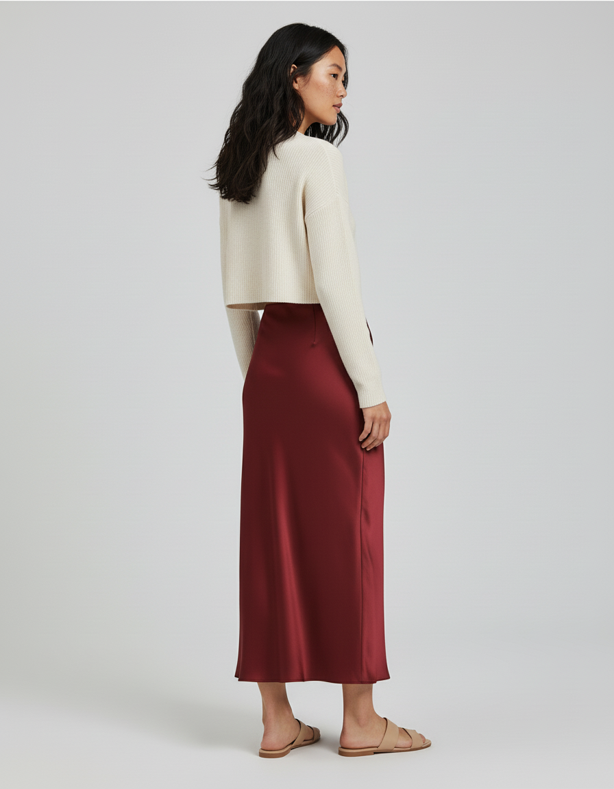 La Jupe Longue Bordeaux Satinée Fluide : L'Éclat Sophistiqué