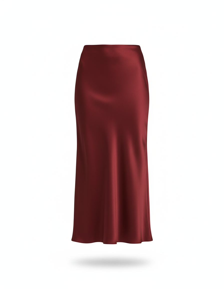 L'Élégance Fluide Redéfinie : La Jupe Longue Bordeaux Satinée