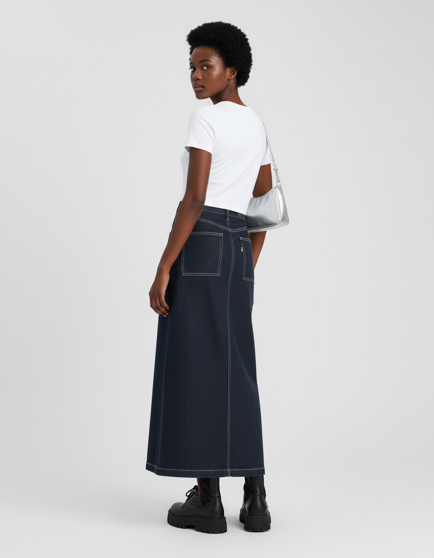 Ce qui distingue notre jupe ? Au-delà de sa matière denim de qualité supérieure, ce sont ses détails pensés : la rangée de boutons devant qui apporte une touche vintage revisitée et les surpiqûres contrastées qui soulignent sa structure. Son design intemporel, conjugué à une confection minutieuse, en fait un investissement durable pour votre garde-robe. Adoptez cette jupe longue pour une élégance contemporaine qui défie les saisons et les tendances éphémères.