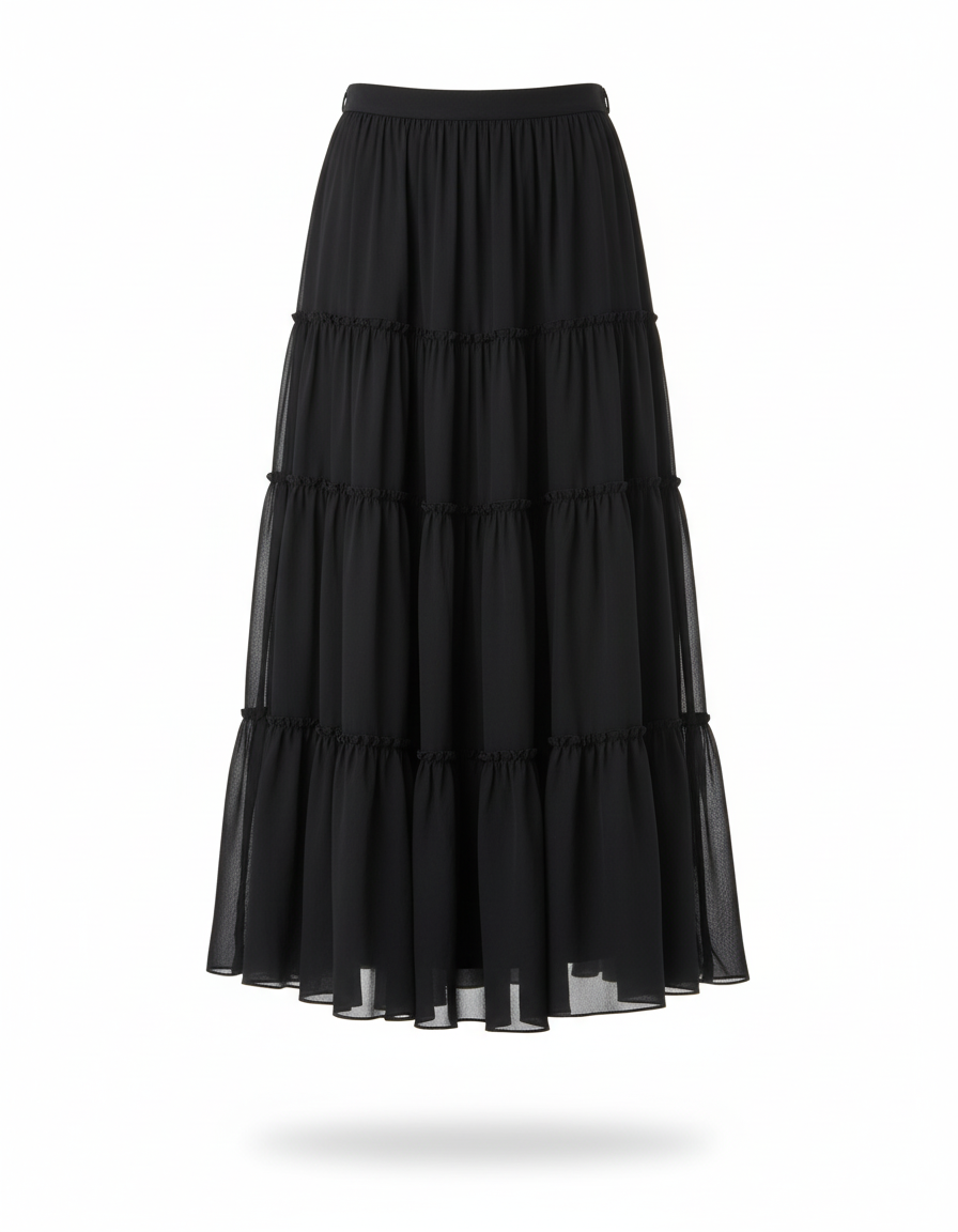 - Longueur : Jupe longue, atteignant les chevilles.