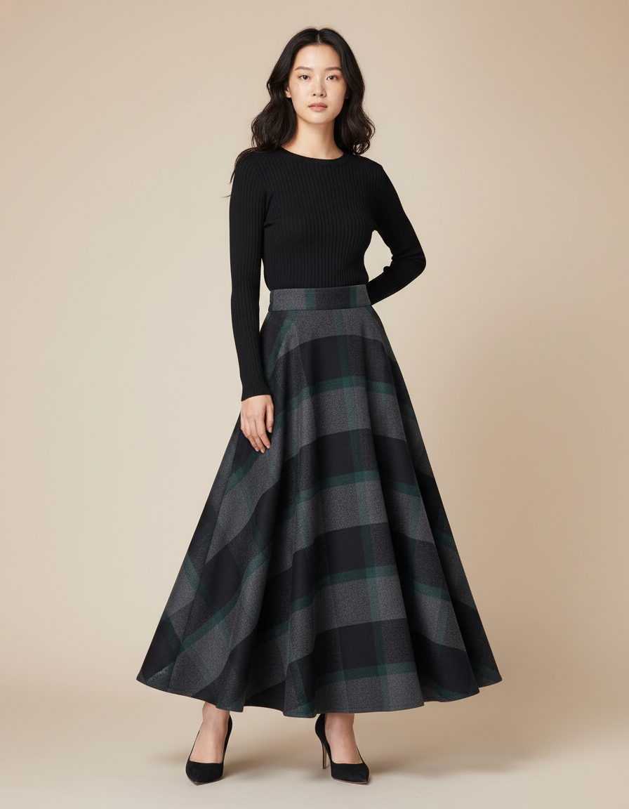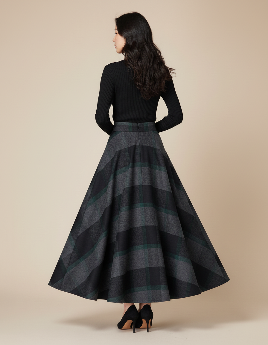 La Jupe Longue Carreaux Évasée : L'Art du Mouvement et de l'Élégance Hivernale