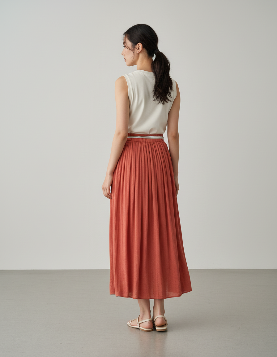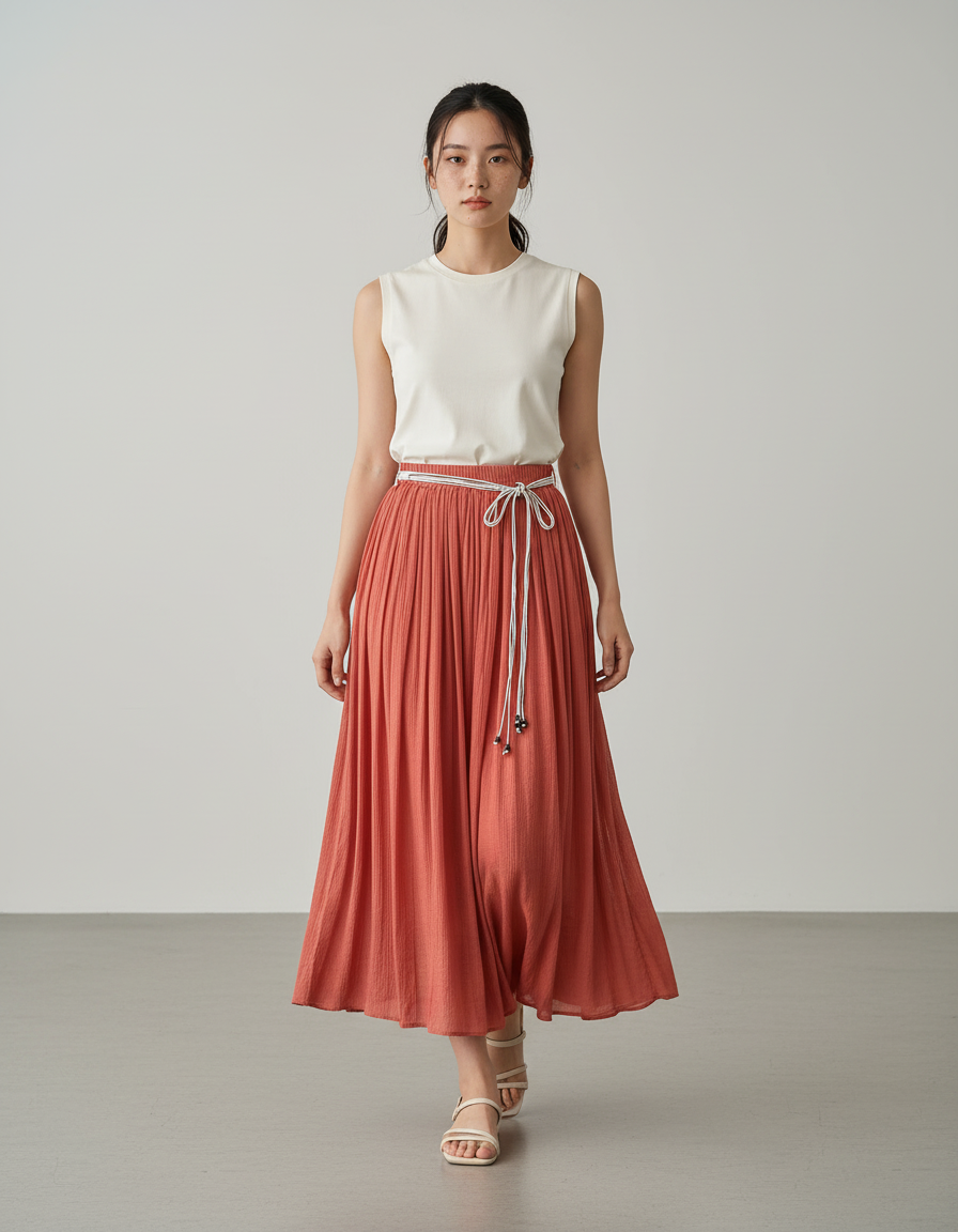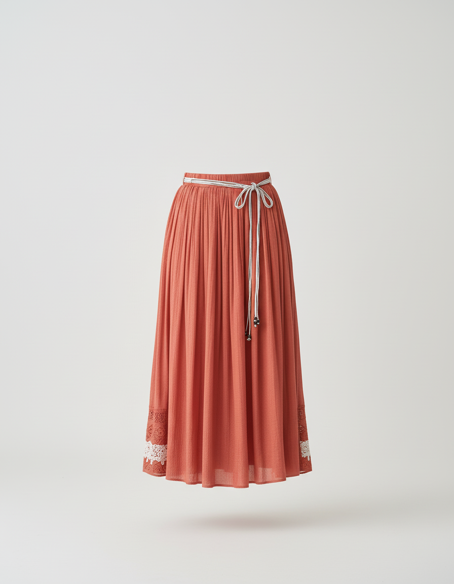 - Style : Jupe longue avec cordon de serrage décoratif à la taille