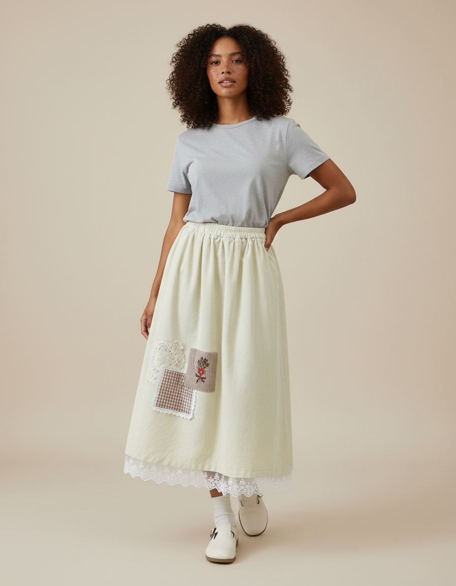 Ce qui distingue véritablement la Jupe Longue Country, c'est son âme artisanale. Chaque détail a été pensé pour créer une pièce unique : des appliqués "colorés" délicatement cousus, évoquant un charme bucolique raffiné, à la subtile dentelle qui borde l'ourlet, ajoutant une touche de féminité intemporelle. Loin des standards uniformes, elle célèbre l'individualité et le savoir-faire. Portez-la pour affirmer un style personnel, où la tradition rencontre la modernité dans une harmonie parfaite. C'est plus qu'une jupe, c'est une déclaration de goût et d'authenticité.