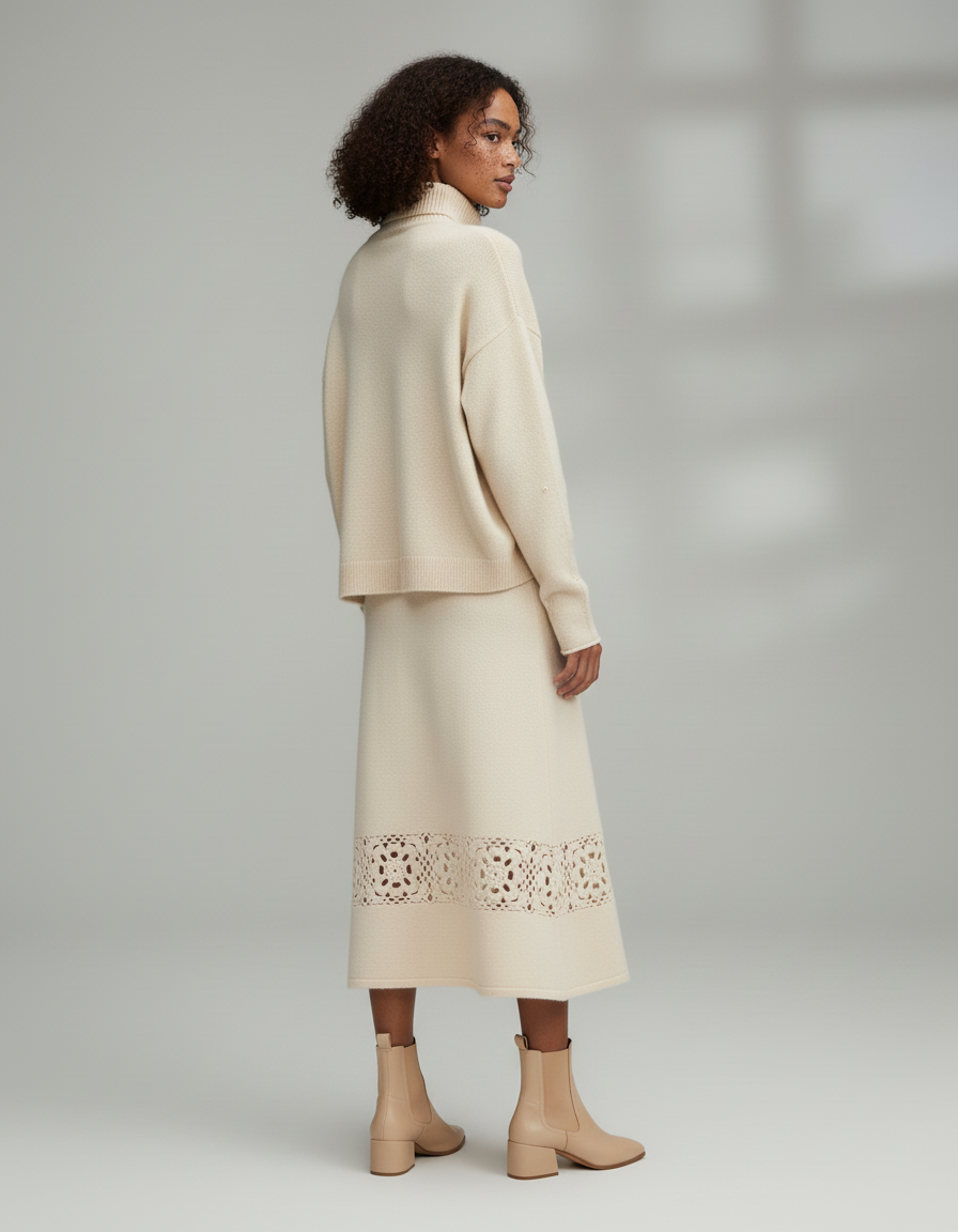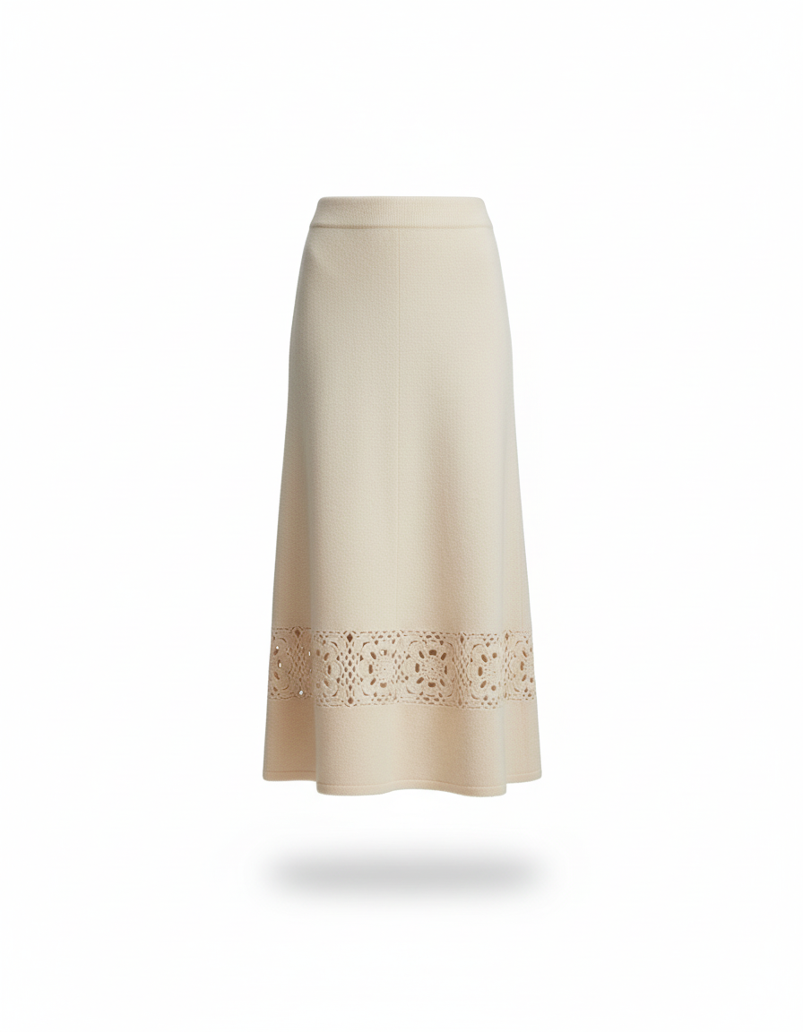 La Jupe Longue Crème Ajourée Élégante : un vêtement à motif ajouré