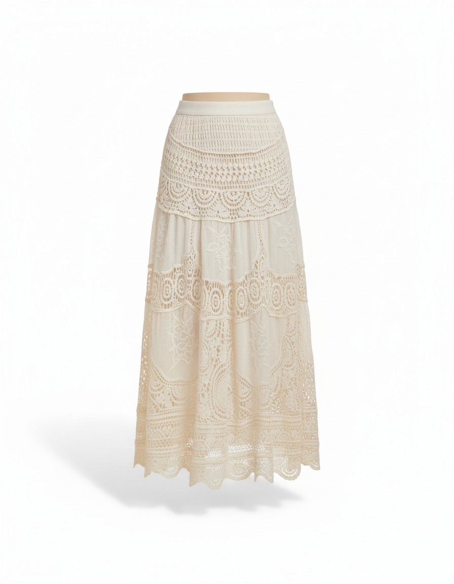 Jupe Longue Crème Dentelle Ajourée Bohème : L'Élégance Estivale Réinventée