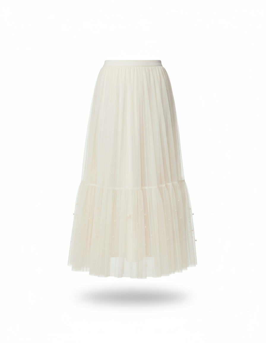 Jupe Longue Crème Tulle Plissée Élégante : L'Allure Aérienne Par Excellence