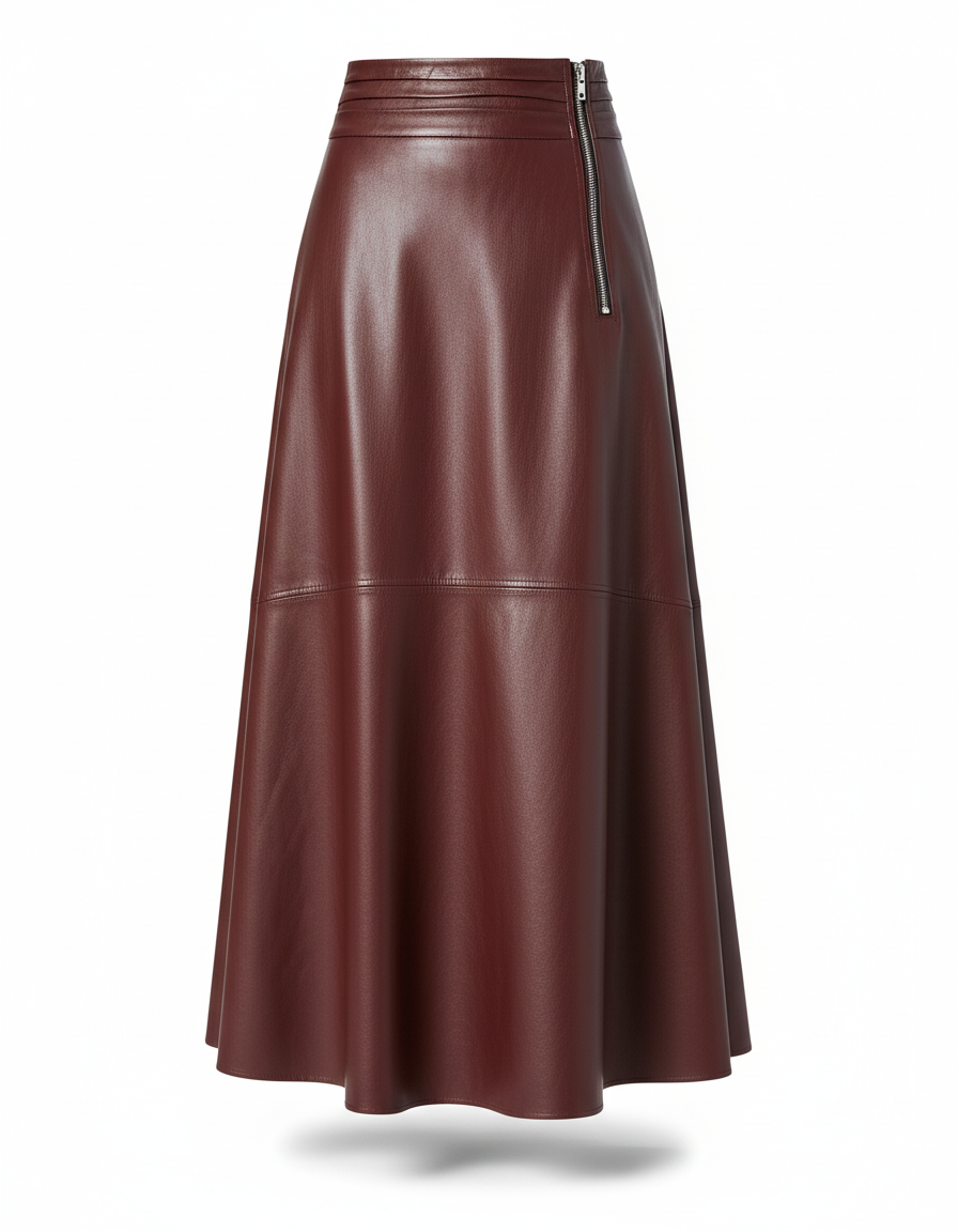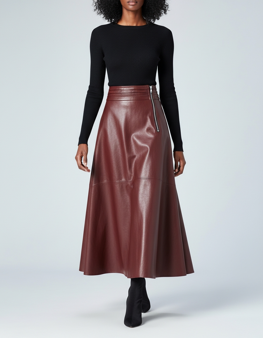 La Jupe Longue Cuir Bordeaux : L'Élégance Hivernale Redéfinie