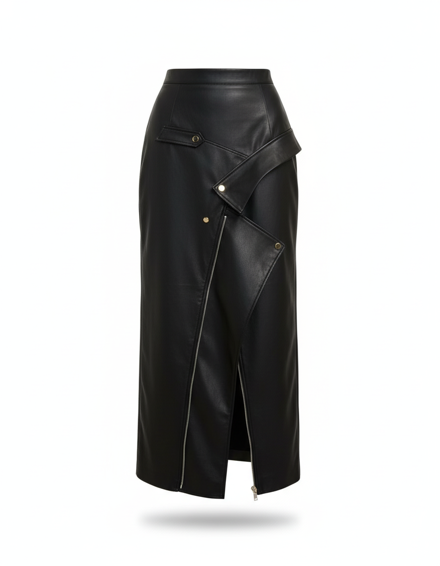 L'Audace Redéfinie : Jupe Longue Cuir Asymétrique Chic