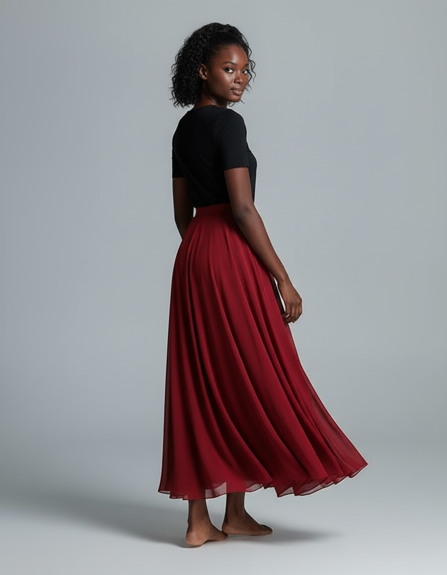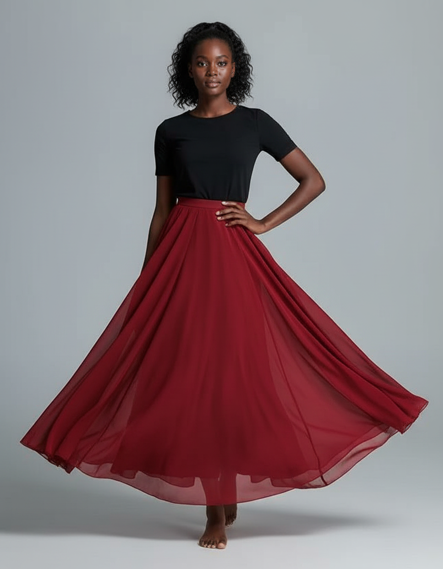 Élégante et fluide, cette jupe longue est parfaite pour la danse et le mouvement.