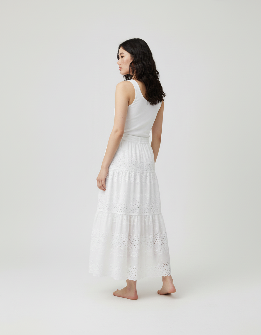 Caractéristiques de la Jupe Longue Dentelle Ajourée Blanche Bohème