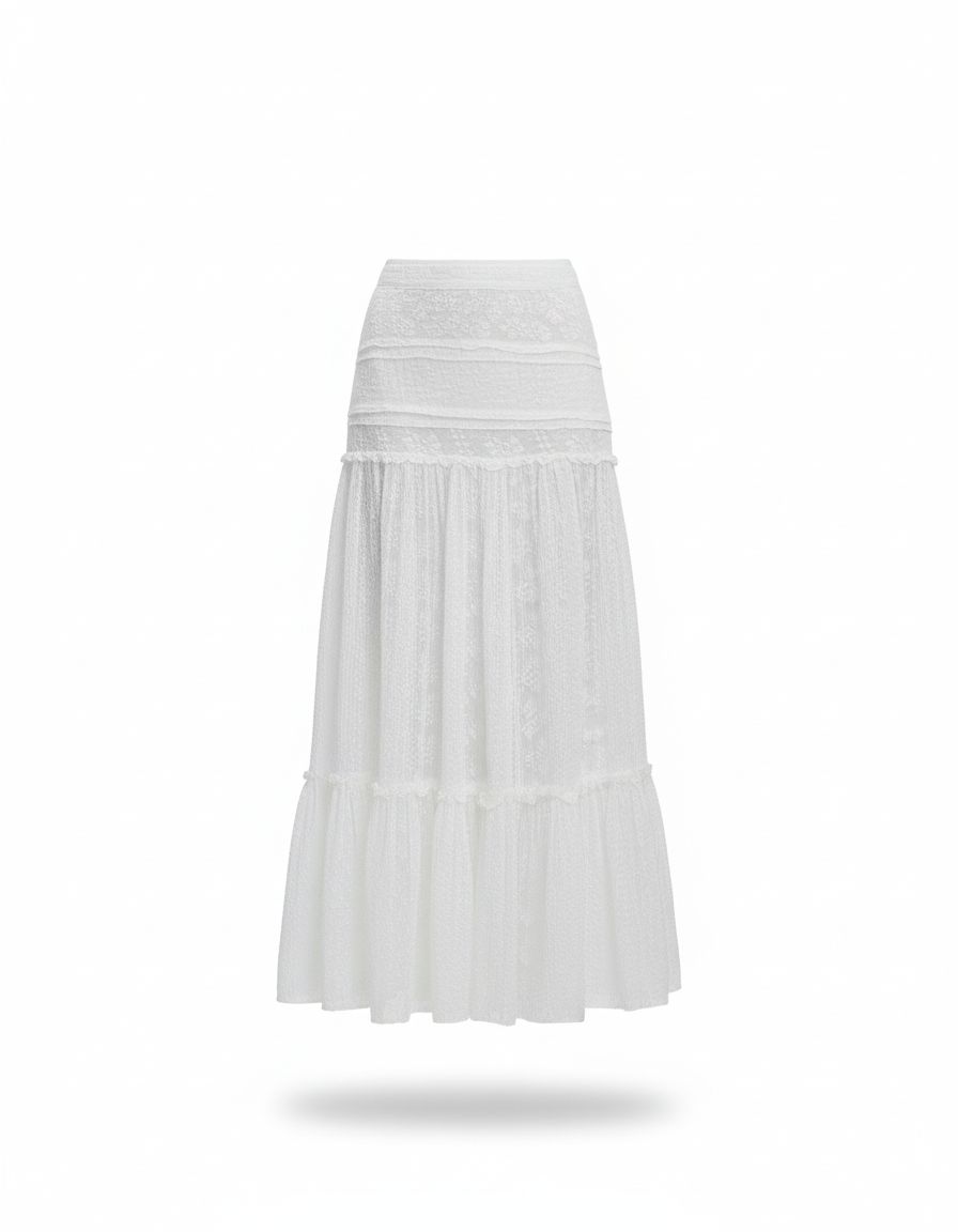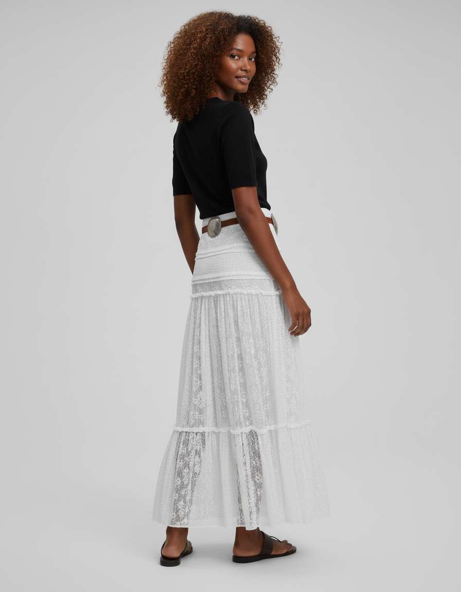 Évoquez une élégance décontractée avec notre Jupe Longue Dentelle Bohème, parfaite pour un style estival chic.
