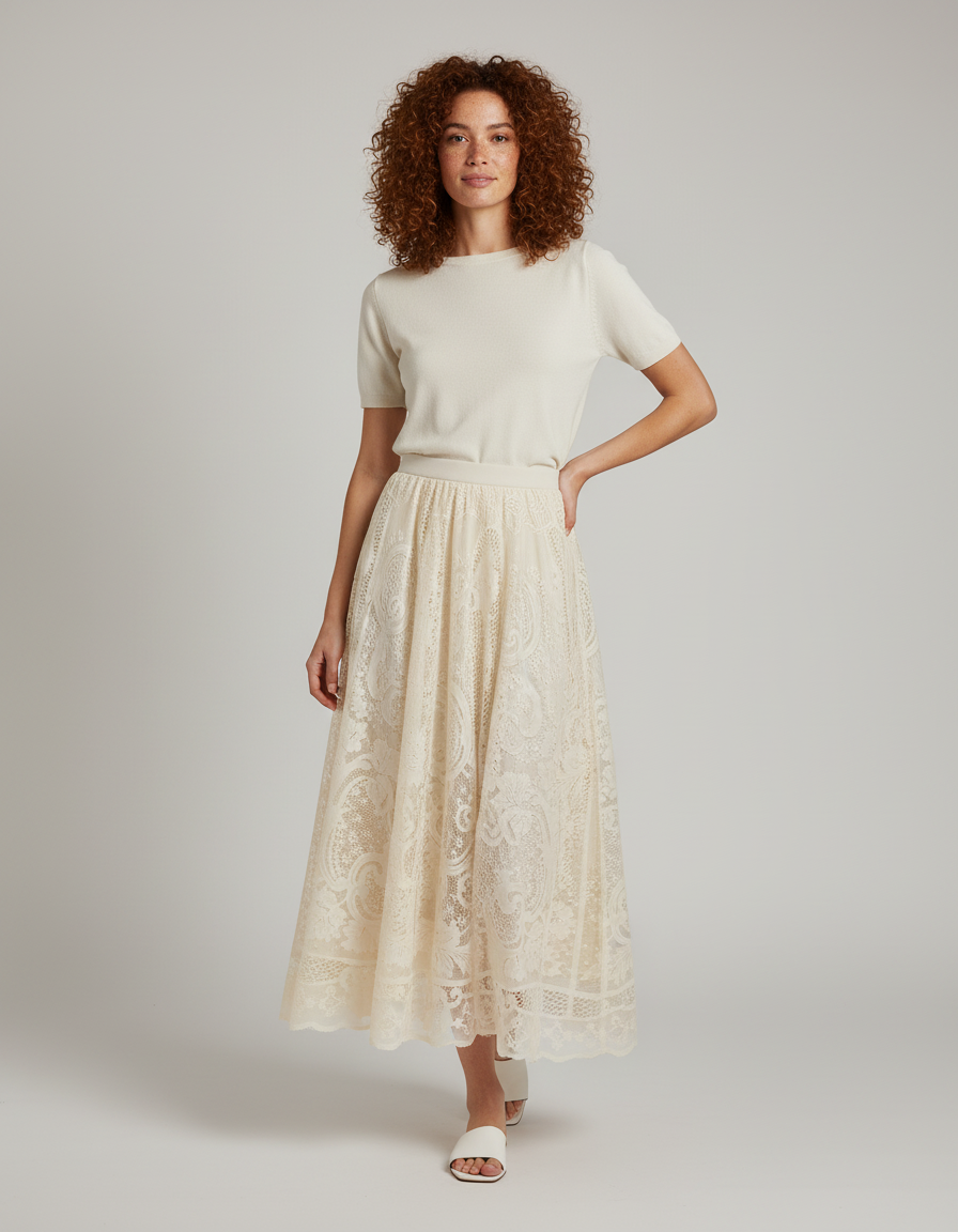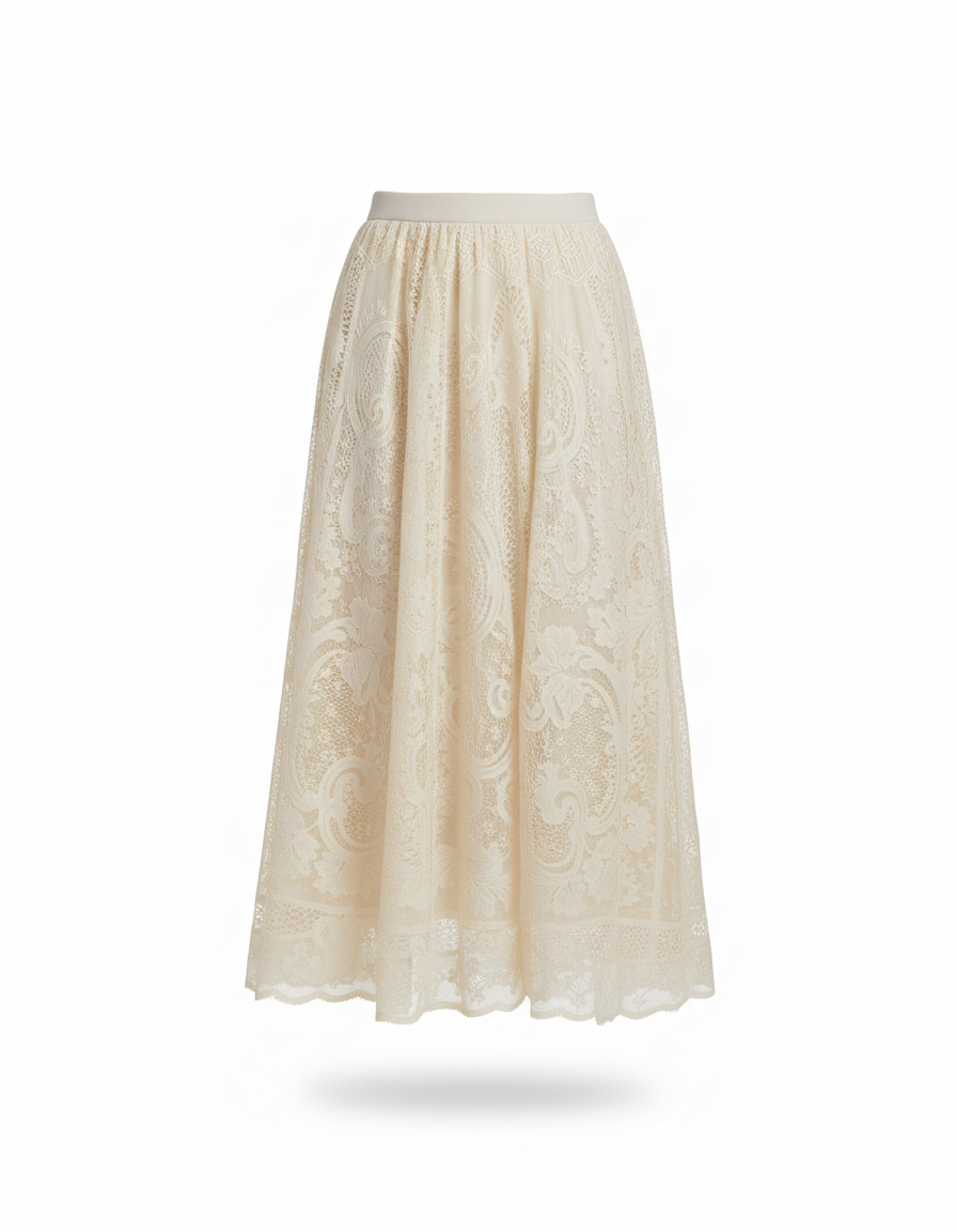 Jupe Longue Dentelle Brodée Élégante