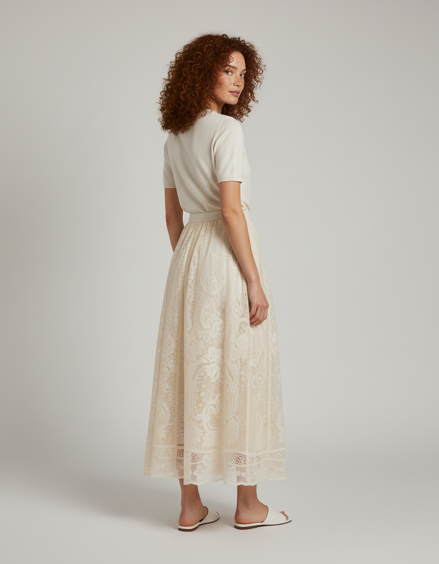Ce qui distingue notre jupe, c'est l'alliance parfaite entre un design contemporain et un artisanat d'exception. Chaque motif de dentelle est finement brodé, révélant une richesse de détails qui capte la lumière et les regards. Loin des créations éphémères, sa qualité supérieure et son tombé impeccable en font un investissement durable dans votre garde-robe. Polyvalente, elle se marie aisément avec un chemisier en soie pour une élégance formelle, ou un simple top en maille pour un chic décontracté. Adoptez cette pièce maîtresse et affirmez votre style avec une distinction rare.
