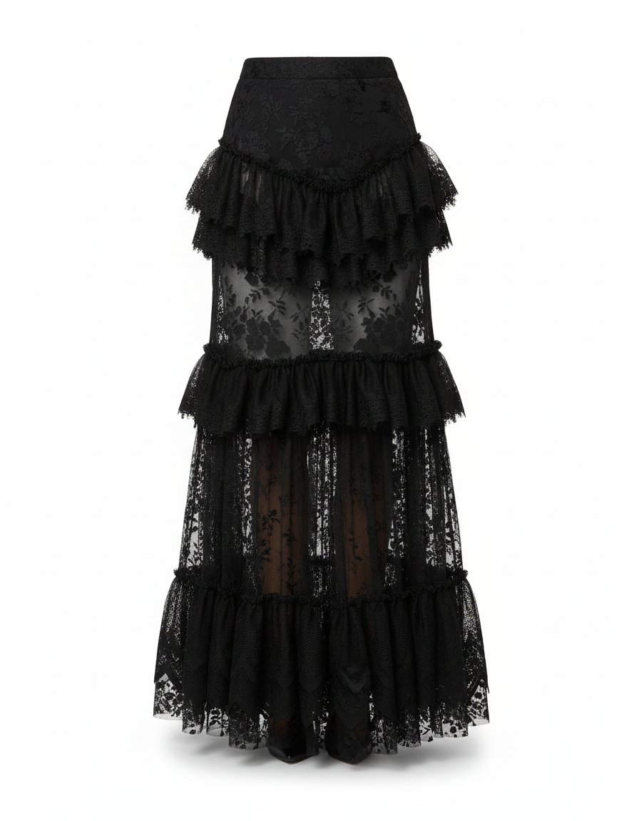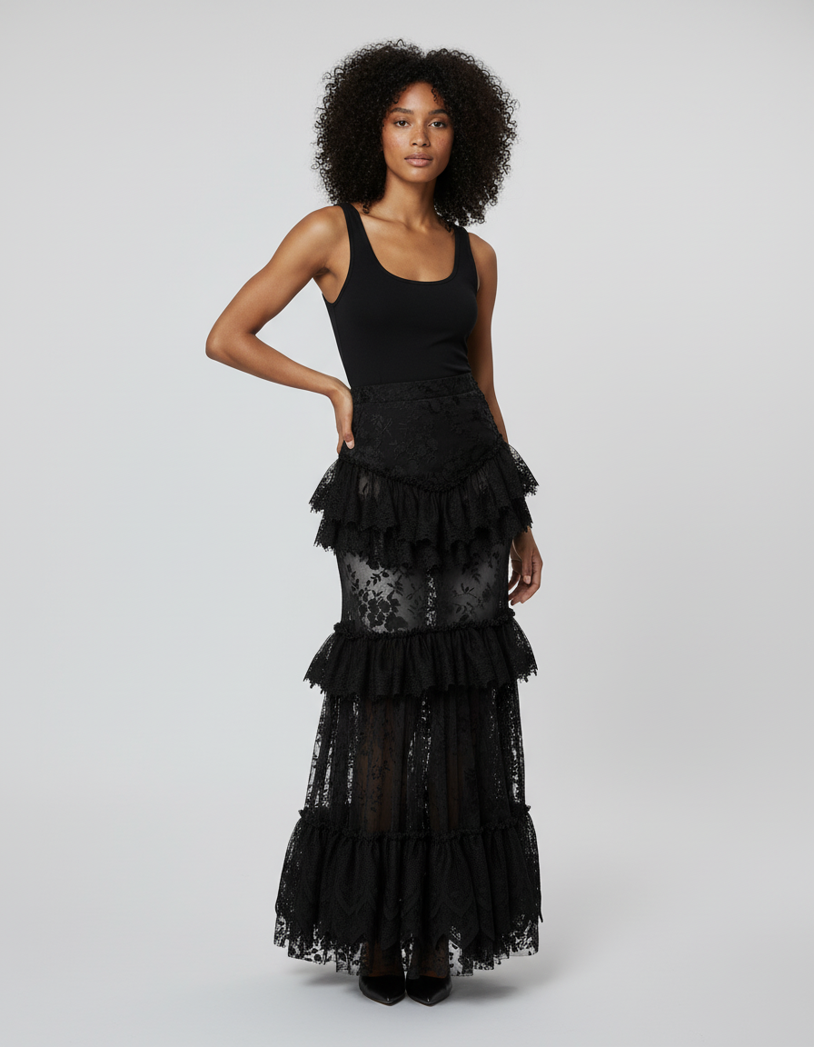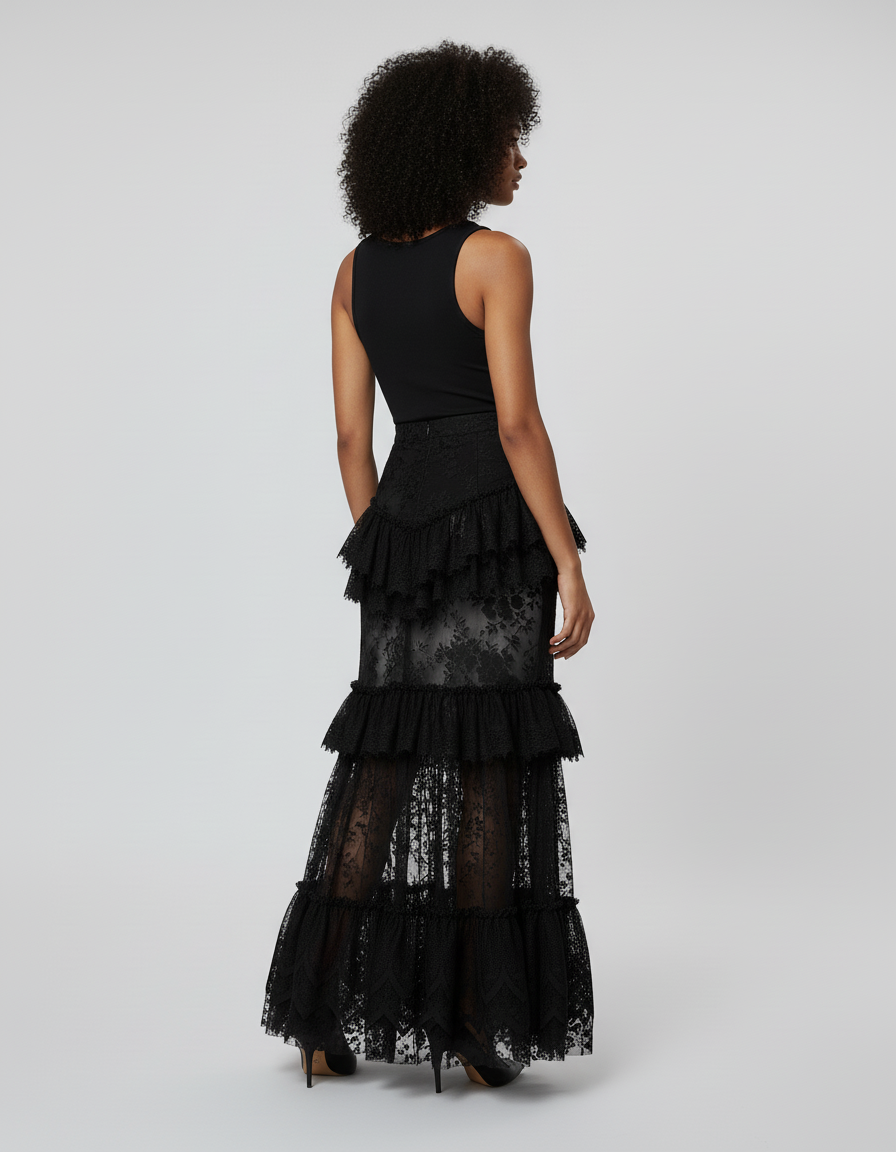 Jupe Longue Dentelle Noire À Volants : L'Élégance Redéfinie