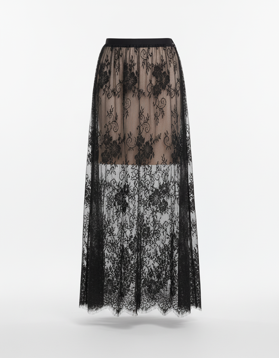 Jupe Longue Dentelle Noire Transparente Élégante : L'Art de la Subtilité