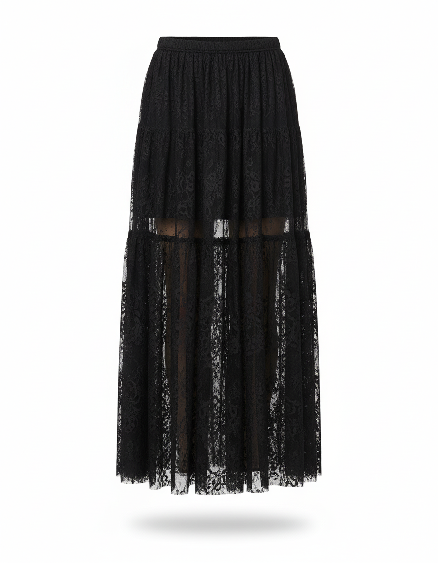 Jupe Longue Dentelle Noire Transparente Élégante Chic