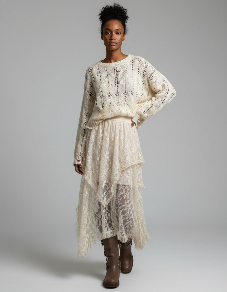 La Jupe Asymétrique en Dentelle : L'Art de la Légèreté Bohème