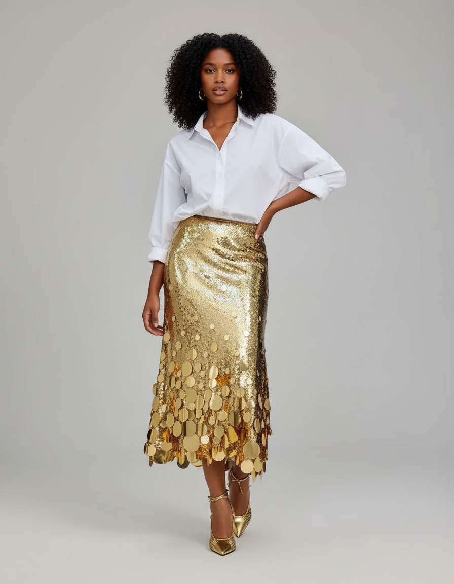 Trouvez des modèles similaires à notre Jupe Longue Dorée À Paillettes Élégante qui pourraient vous séduire en explorant les catégories ci-dessous et laissez-vous inspirer par notre collection.