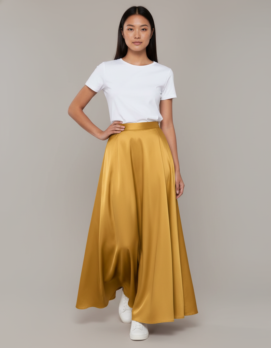 Usage de la Jupe Longue Dorée Satinée Fluide