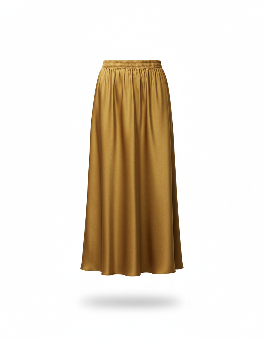 Adoptez une élégance intemporelle avec notre jupe longue dorée en soie plissée, parfaite pour toutes les occasions.
