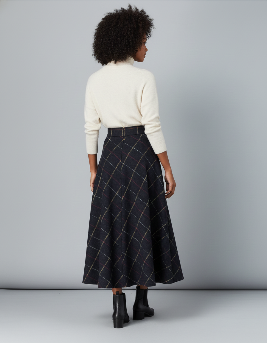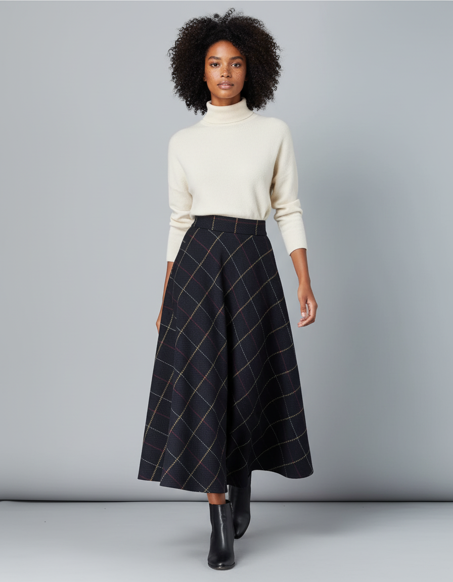 Jupe Longue Écossaise Évasée Élégante : Le Raffinement au Quotidien