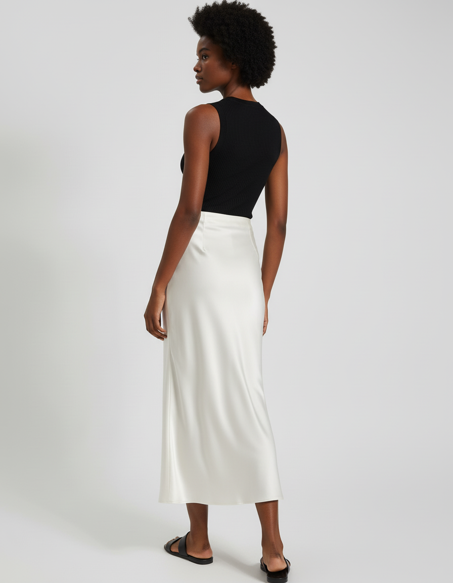 Confectionnée dans un satin fluide de haute qualité, sa couleur écru intemporelle apporte une touche de luxe serein à chaque tenue. Ce qui la distingue ? Son tombé impeccable et sa texture soyeuse qui caresse la peau, garantissant un confort optimal tout au long de la journée. Loin des tendances éphémères, la Jupe Longue Écru est un investissement dans un chic durable, une expression concrète d'une élégance raffinée et contemporaine.