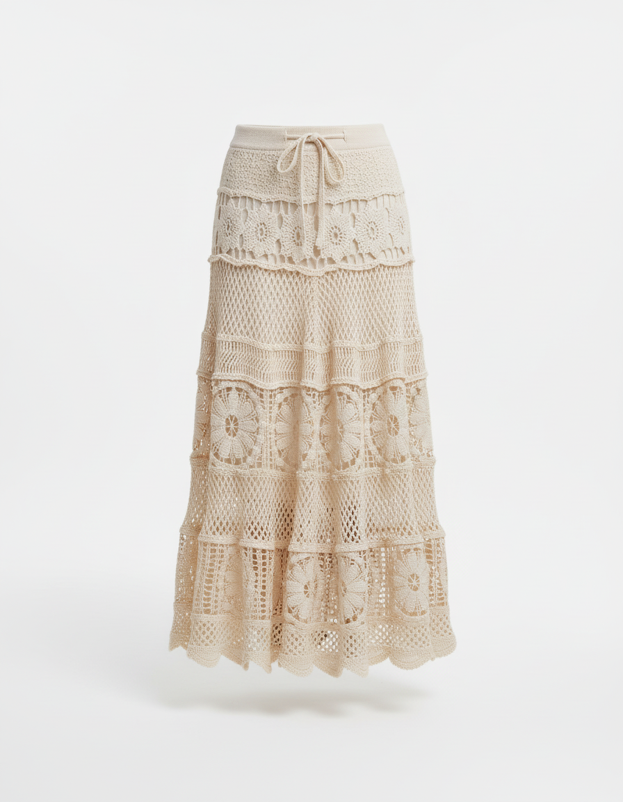 Jupe Longue Écru Crochet Bohème : Votre Signature Bohème Chic
