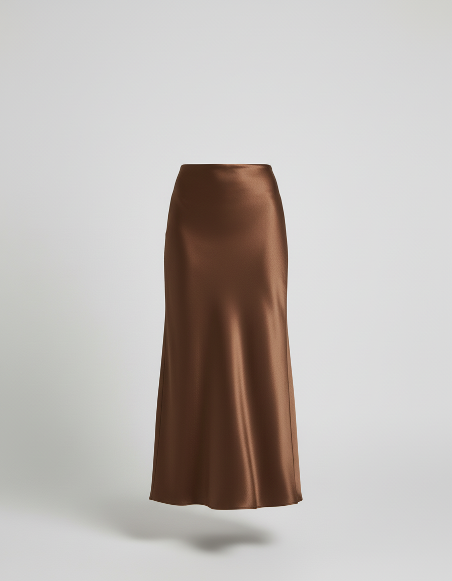 Découvrez la Jupe Longue Effet Soie, une pièce maîtresse qui allie sophistication et aisance. Confectionnée dans un satin fluide d'un riche marron, son tombé évasé épouse délicatement la silhouette sans jamais entraver vos mouvements. Chaque pas devient une danse, chaque ligne une caresse, vous offrant une liberté inégalée tout en sublimant votre allure. Son tissu luxueux, doux au toucher, garantit un confort absolu, du matin jusqu'au bout de la nuit.