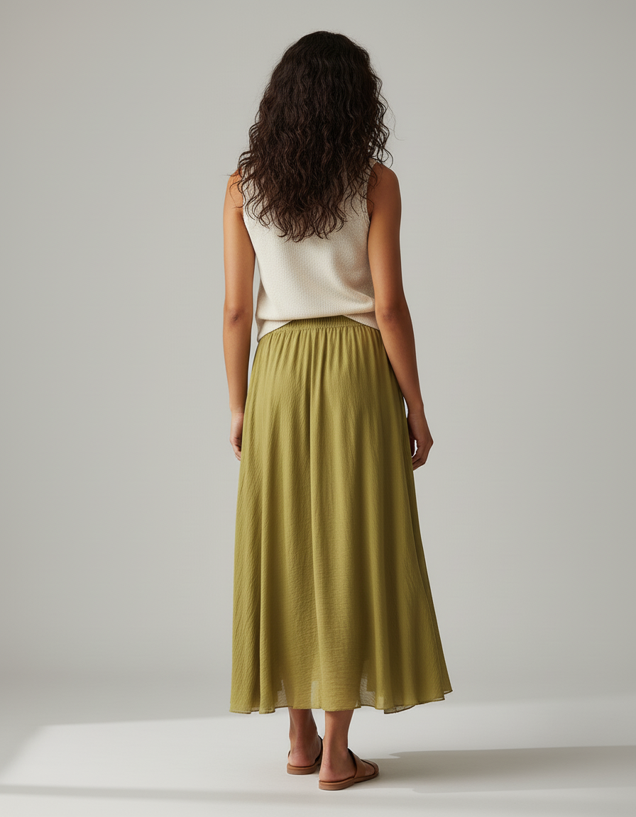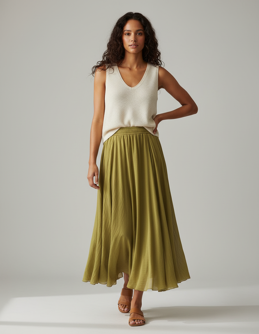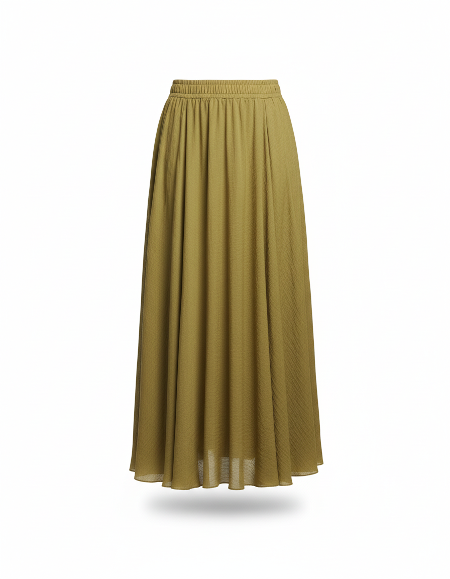 Jupe Longue Élégante Kaki Fluide : L'Art du Mouvement et de l'Élégance