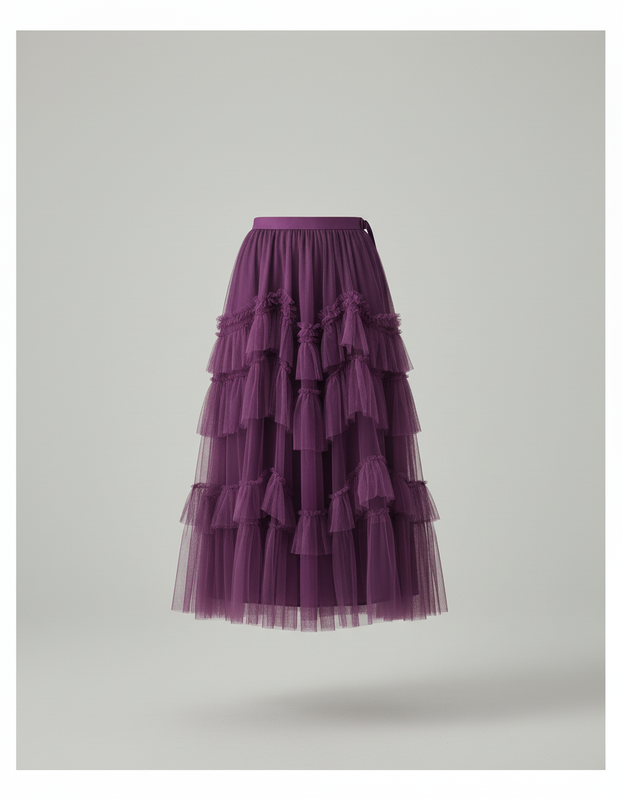 La Jupe Longue Élégante Tulle Violette À Volants : Ode à la Grâce