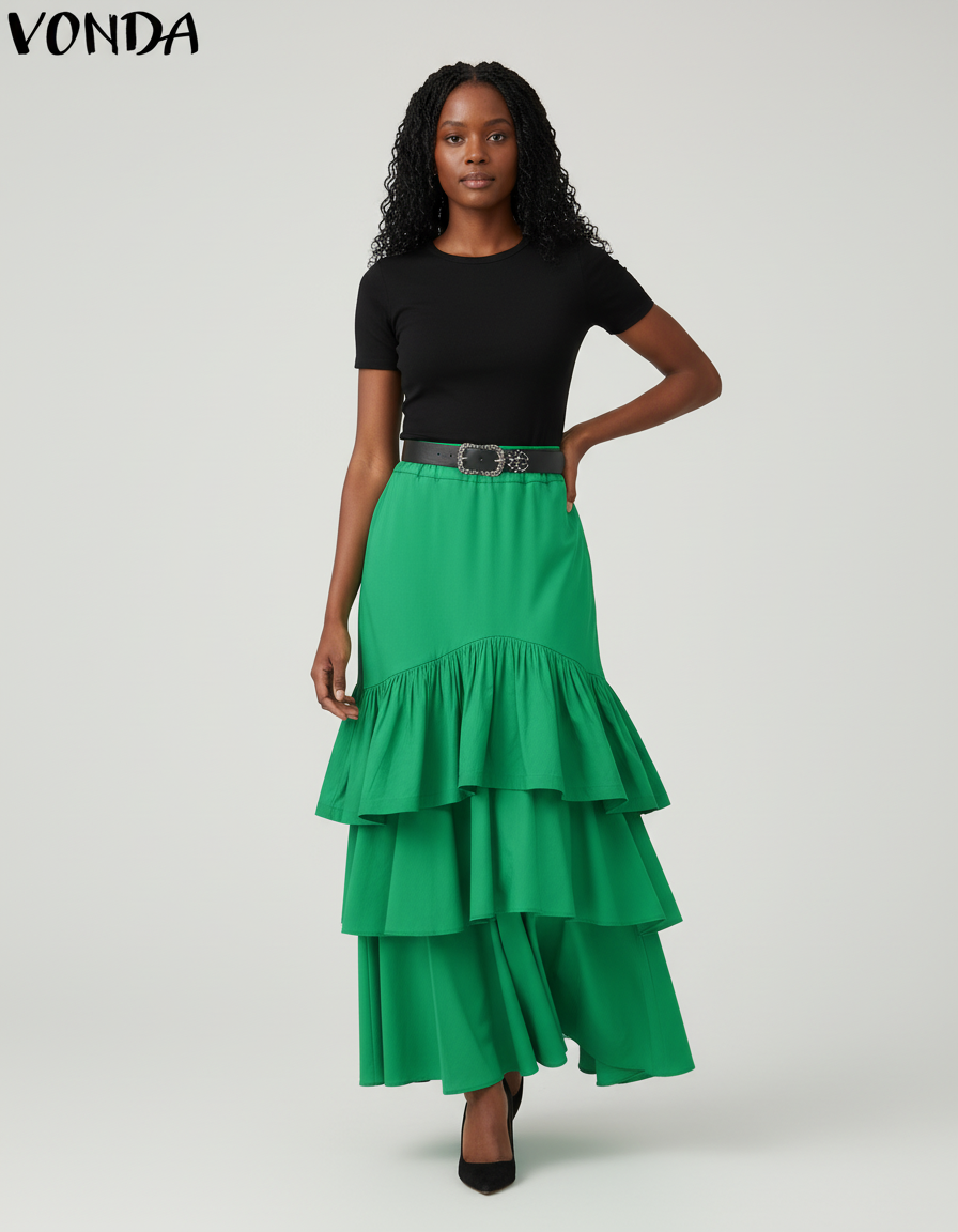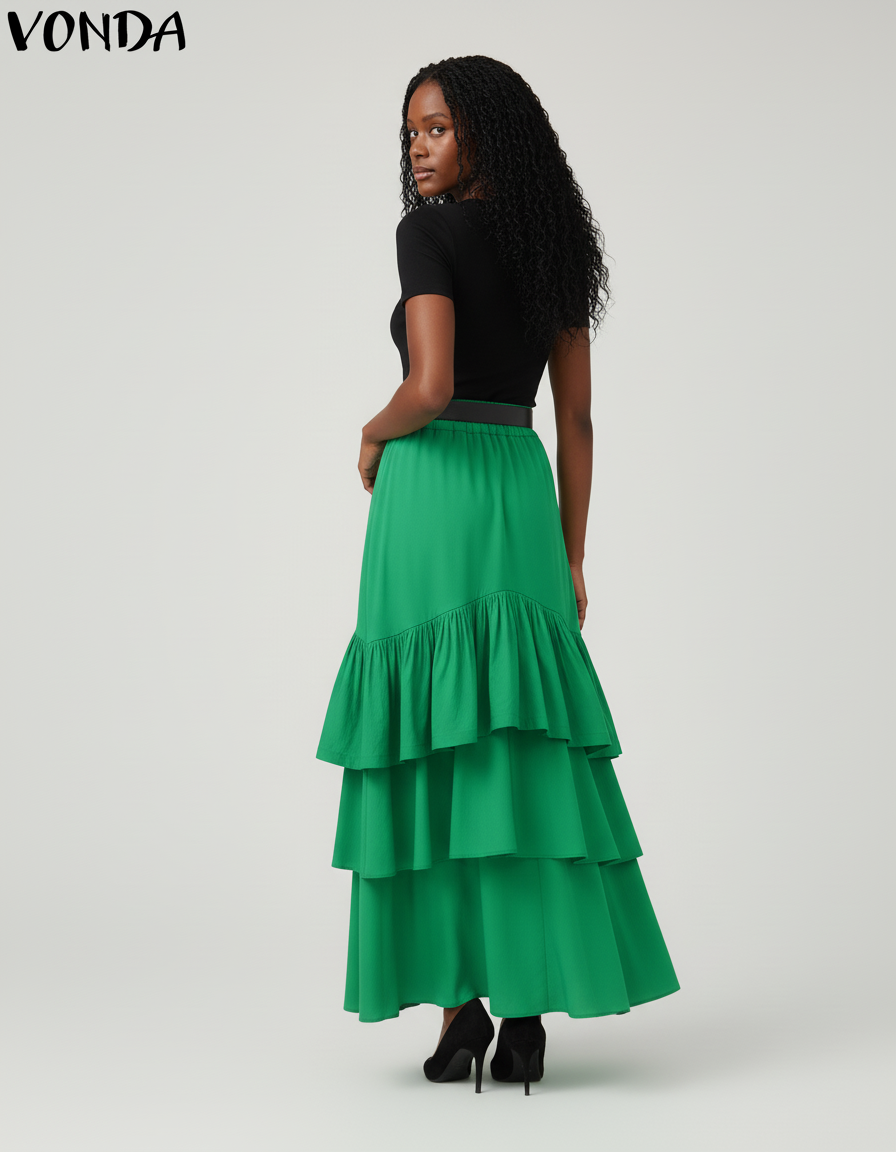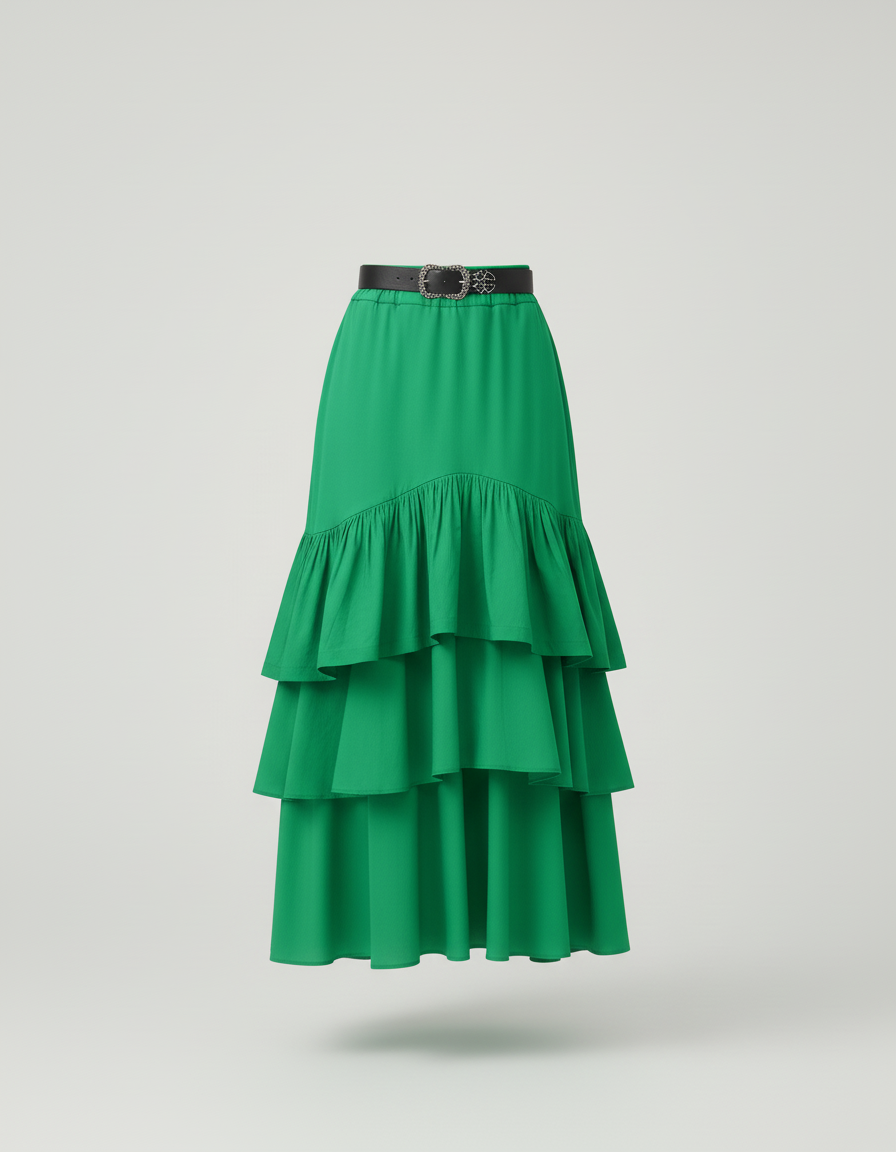 Jupe Longue Verte à Volants : Élégance Fluide et Confort Absolu