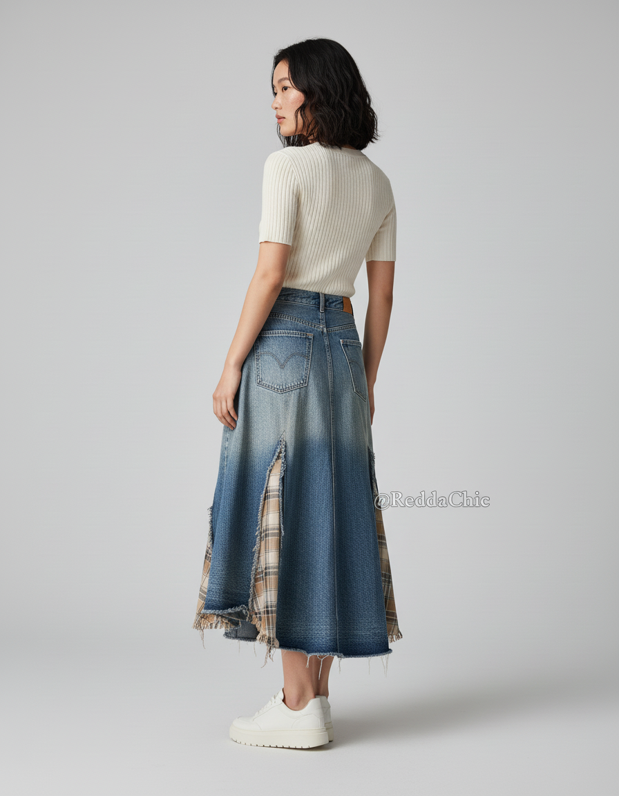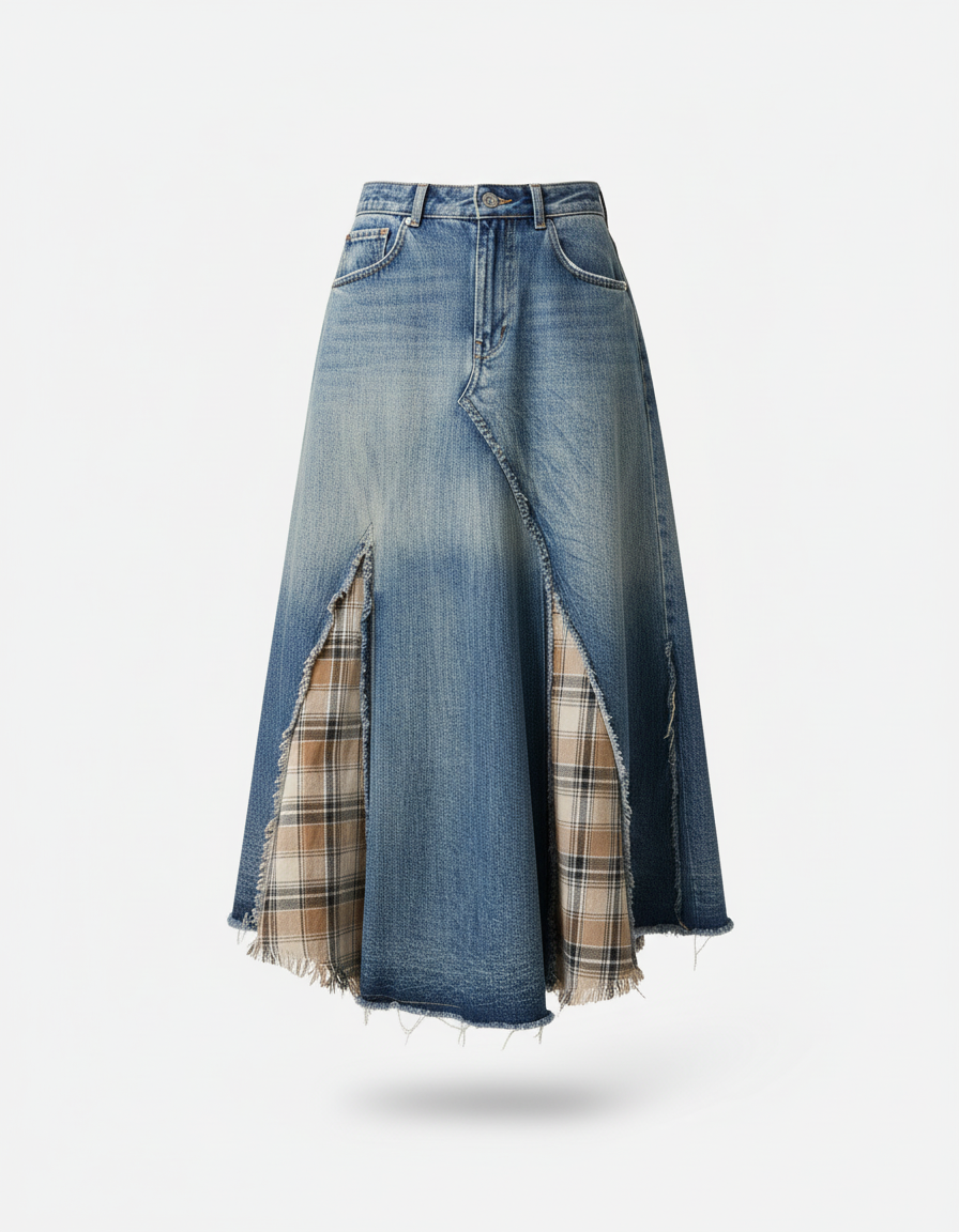 Plus qu'une simple jupe en jean, notre création se distingue par son jeu de textures et de motifs inattendu, fusionnant l'intemporalité du denim délavé avec l'authenticité du carreau. Cette jupe est la toile de fond idéale pour exprimer votre individualité, se prêtant aussi bien à une tenue bohème chic qu'à un ensemble urbain sophistiqué. Elle s'adresse à celles qui osent briser les codes, affirmant leur personnalité à travers des choix vestimentaires qui allient originalité, confort et une qualité irréprochable. Laissez-vous séduire par cette pièce unique qui promet de transformer chaque pas en une déclaration de style.