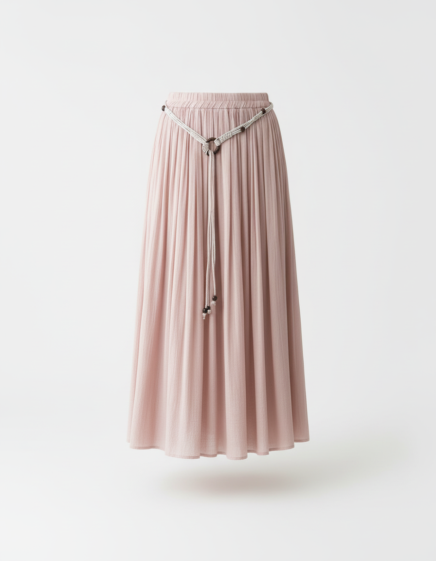 Ce qui distingue notre jupe, c'est l'alliance parfaite entre son étoffe de jersey de coton d'une qualité exceptionnelle et sa coupe plissée délicate. Loin des plissés rigides, le nôtre offre un tombé souple et dynamique qui suit chacun de vos pas avec grâce. La teinte rose subtile, poudrée et intemporelle, apporte une touche de raffinement discret, facile à associer. Elle n'est pas qu'une simple jupe, c'est une promesse d'élégance sans effort, un investissement dans un style durable et un bien-être quotidien. Adoptez la fluidité du luxe moderne.
