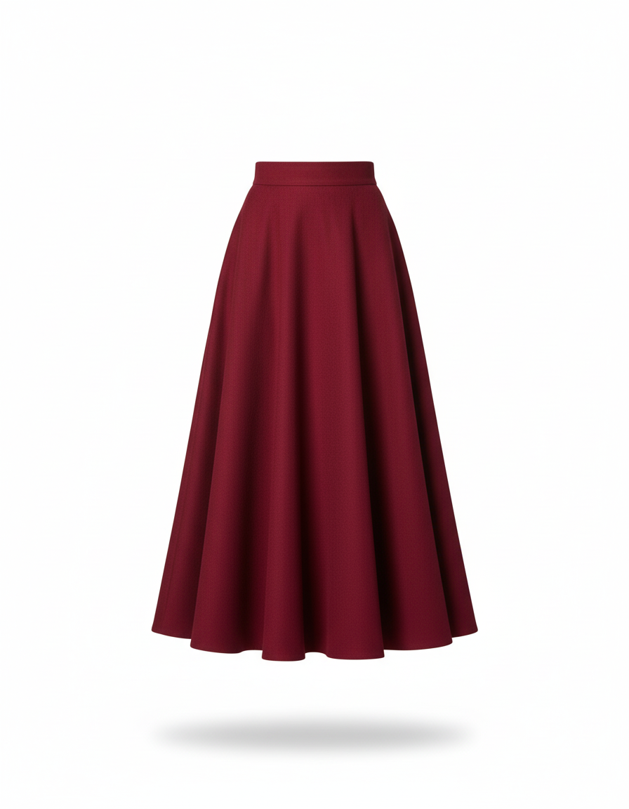 La Jupe Longue Ample en Laine Bordeaux : Élégance Fluide et Chaleur Sophistiquée