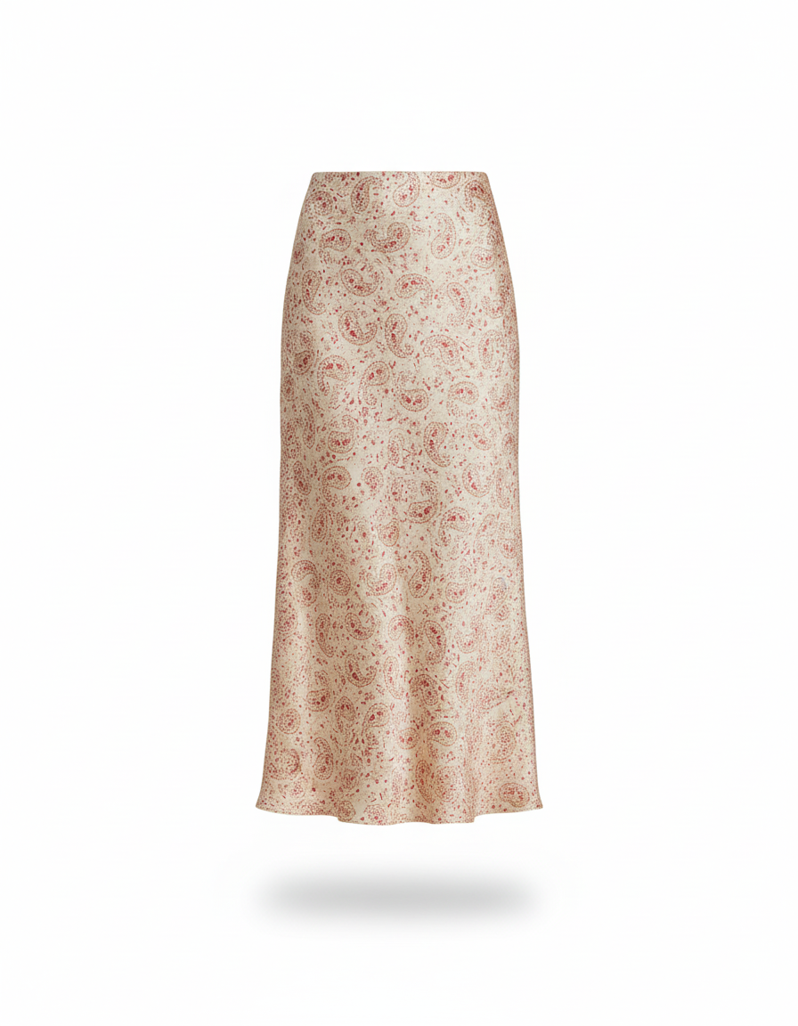 Cette jupe longue est confectionnée en 100% soie véritable. Elle présente une taille naturelle et un motif imprimé floral.
