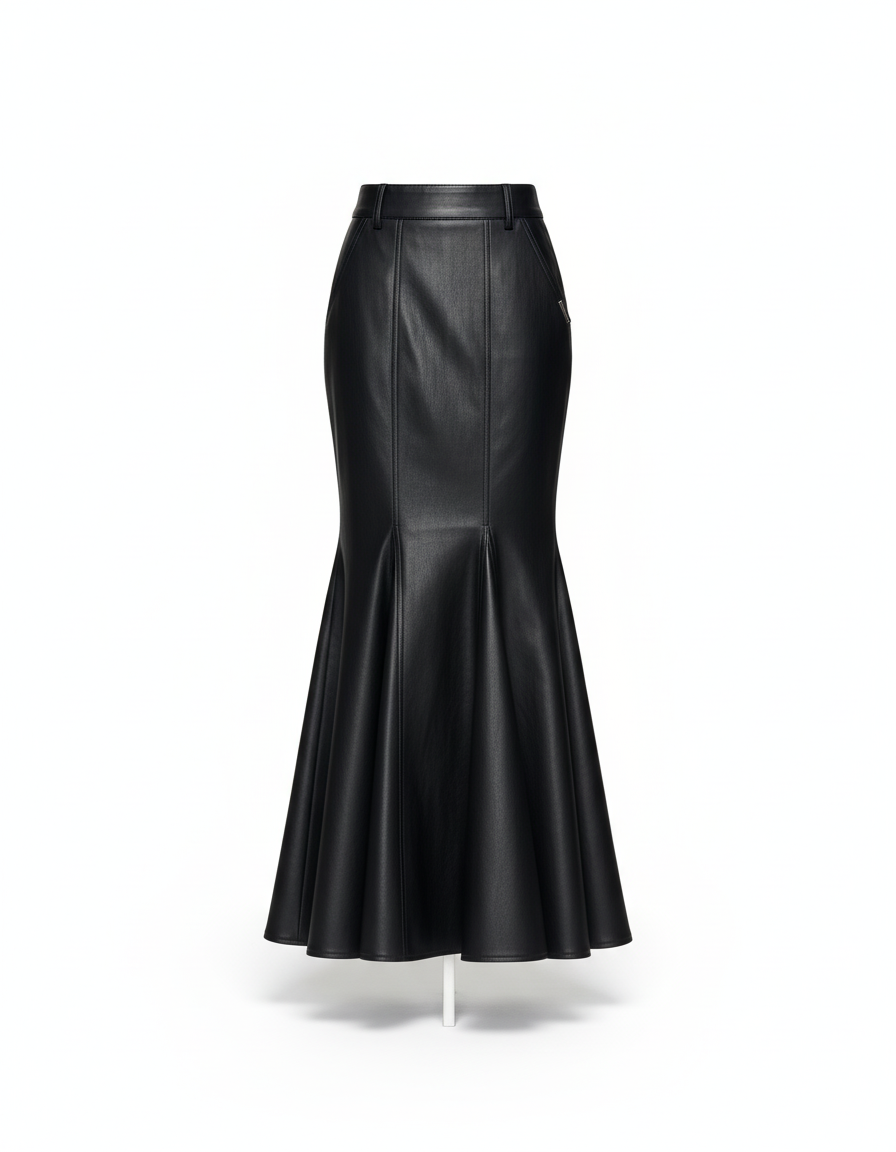 Ce qui la distingue ? Sa coupe évasée distinctive, inspirée de la silhouette sirène, qui sculpte et allonge la silhouette avec une grâce inégalée. Le cuir noir, d'une qualité exceptionnelle, offre un tombé parfait et une sensation luxueuse au toucher. Loin des tendances éphémères, cette jupe est un investissement mode qui transcende les saisons, offrant une polyvalence remarquable. Elle s'associe aussi bien à une chemise immaculée pour un look professionnel chic qu'à un crop top pour une touche résolument contemporaine, affirmant votre goût pour un luxe concret et intemporel.