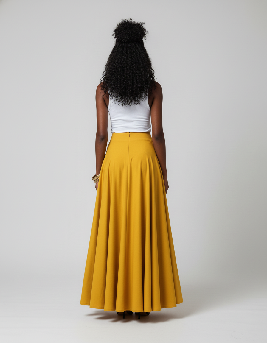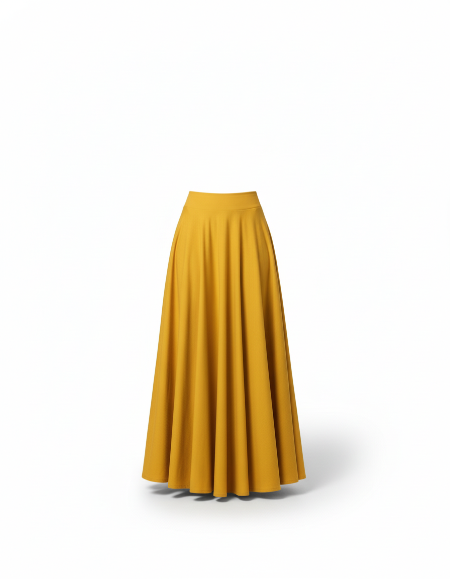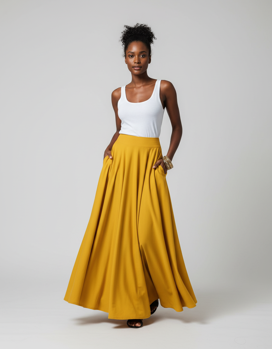 Jupe Longue Évasée Ocre Chic : L'Élégance Fluide et Audacieuse