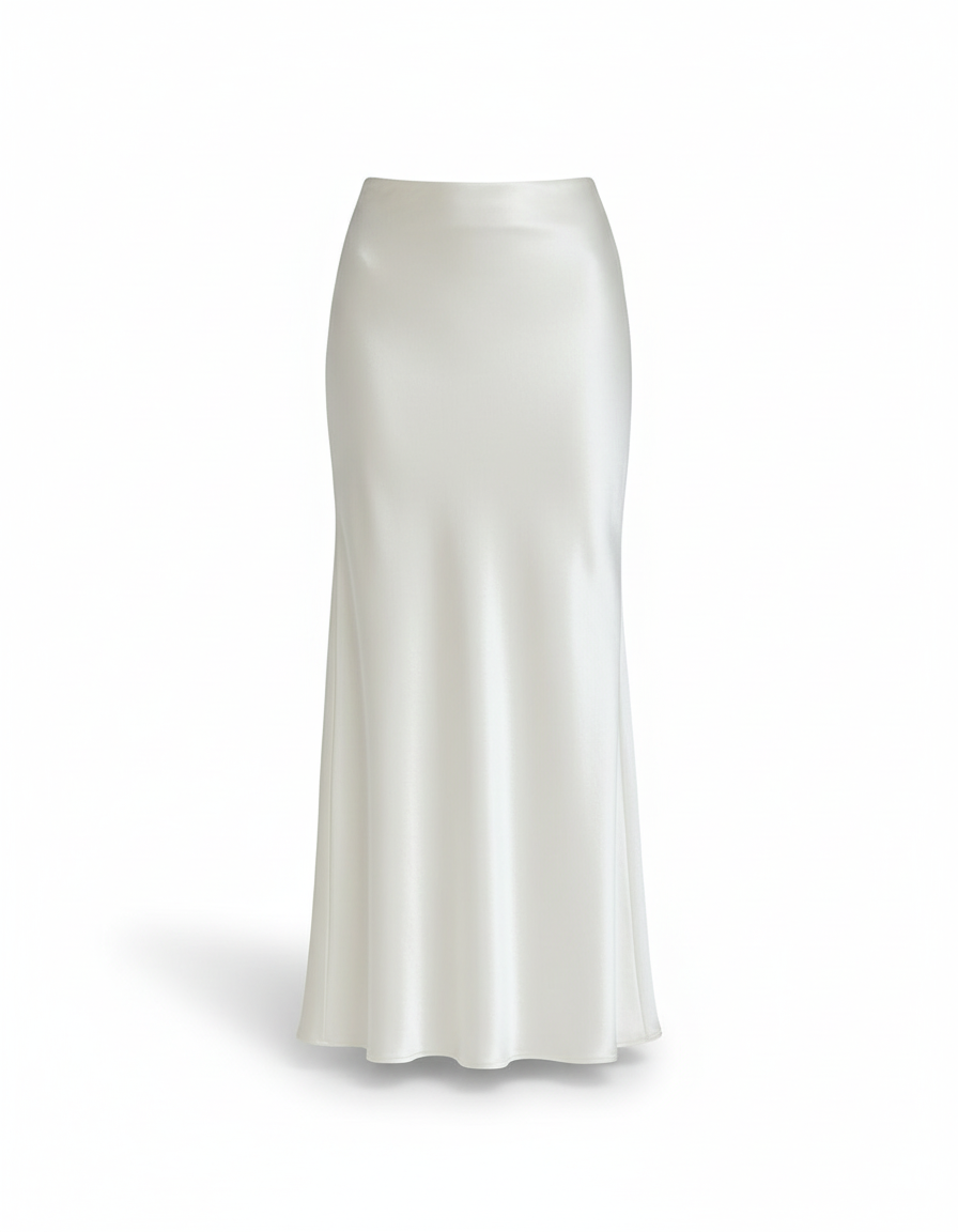 Adoptez l'allure intemporelle avec notre Jupe Longue Évasée Taille Haute, une pièce maîtresse en satin fluide d'un blanc immaculé. Son tombé impeccable épouse délicatement votre silhouette avant de s'évaser avec une grâce naturelle, créant un mouvement aérien à chaque pas. Conçue pour la femme moderne qui ne transige pas sur le confort, sa matière soyeuse garantit une liberté de mouvement absolue, essentielle pour les longues journées de cérémonie ou les soirées élégantes. Sentez-vous à l'aise, sublime et parfaitement libre, sans jamais sacrifier l'opulence de son drapé.
