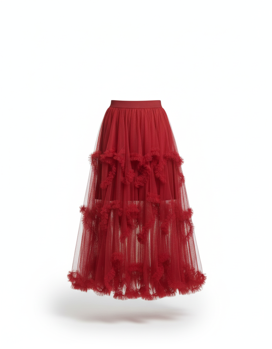 **Jupe Longue Fantaisie** Rouge en Tulle