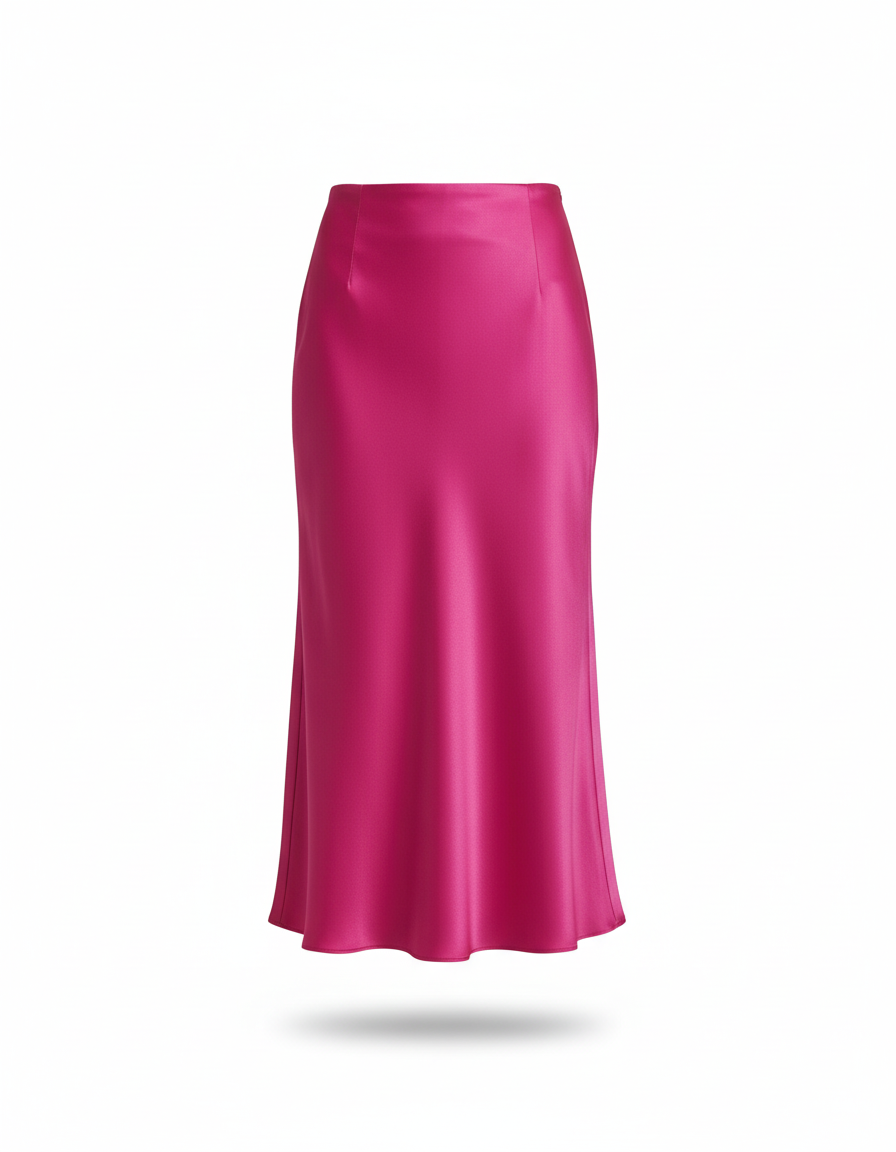 Jupe Longue Femme Luxe Satinée Fuchsia